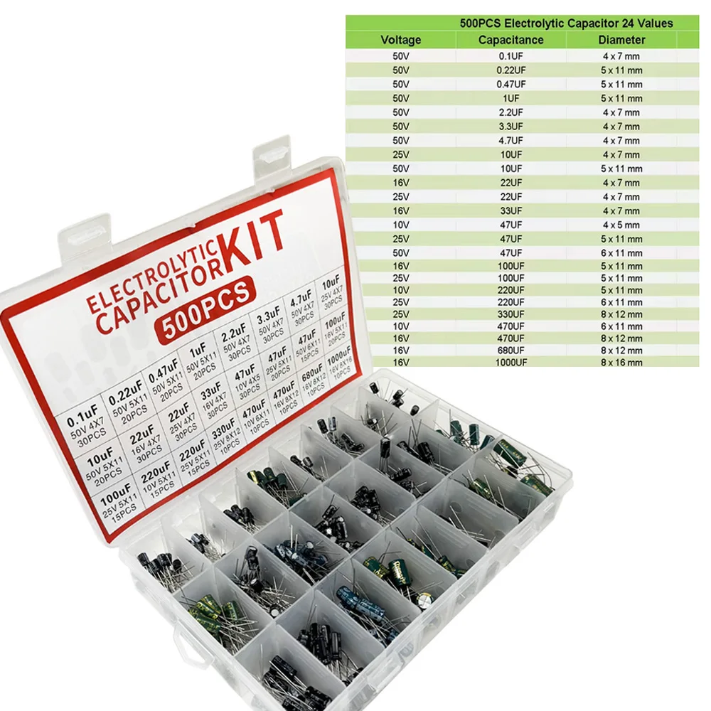 β‘Quick viewTakefast 120pcs Electrolytic Capacitor 16V 25V 50V Aluminum Electrolytic Capacitor Kit 12 Values 1uF-470uF3.07 USDUSD 47.06Hotβ β β β β β 4.9