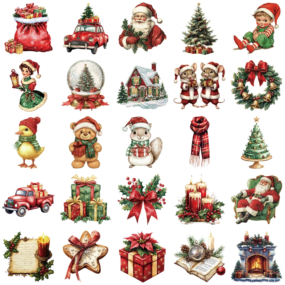 ↑50PCS Creative Retro Christmas Ins Style PET Transparent Material Stickers Phone Case Decoration Personalized Stickers - TopDealBox