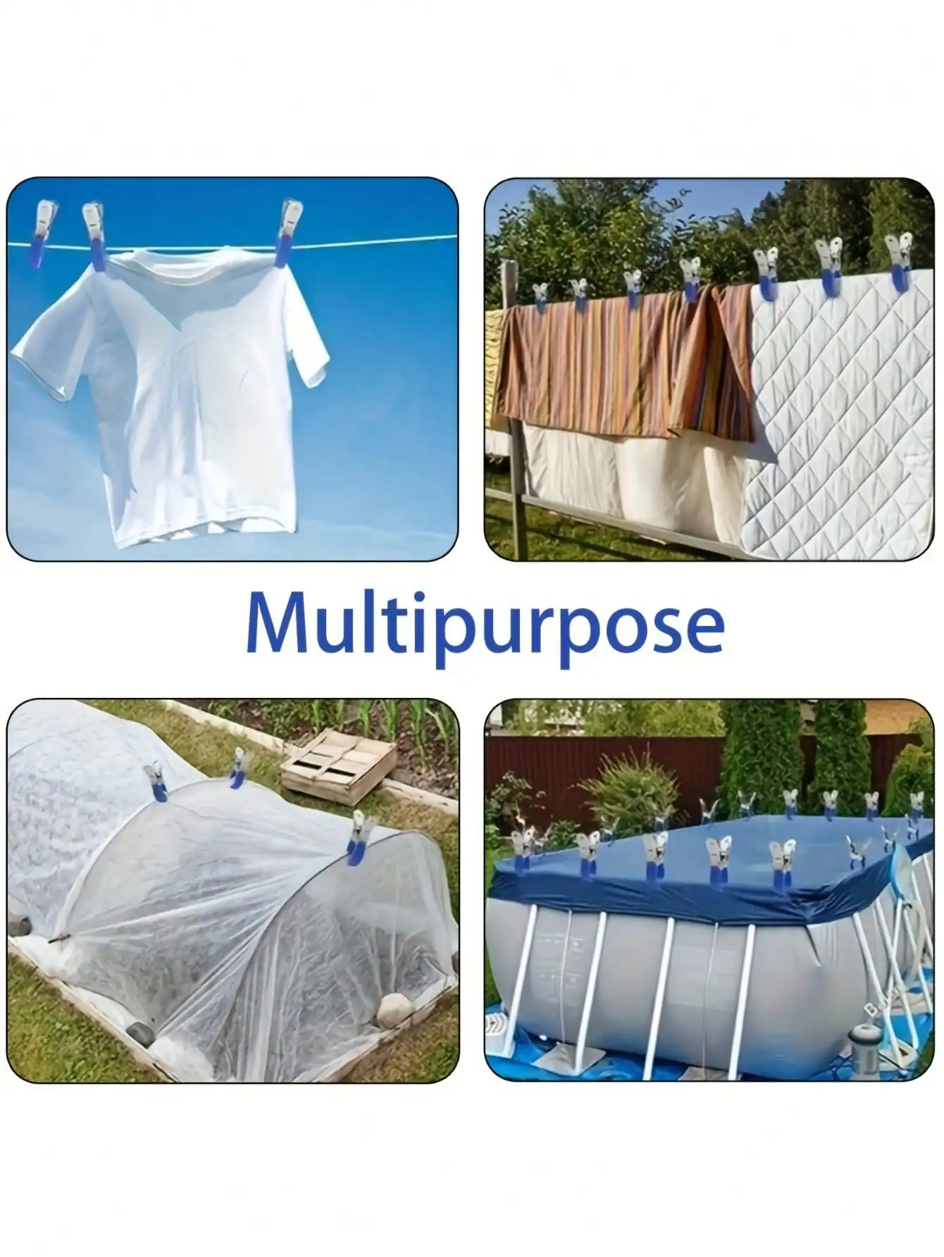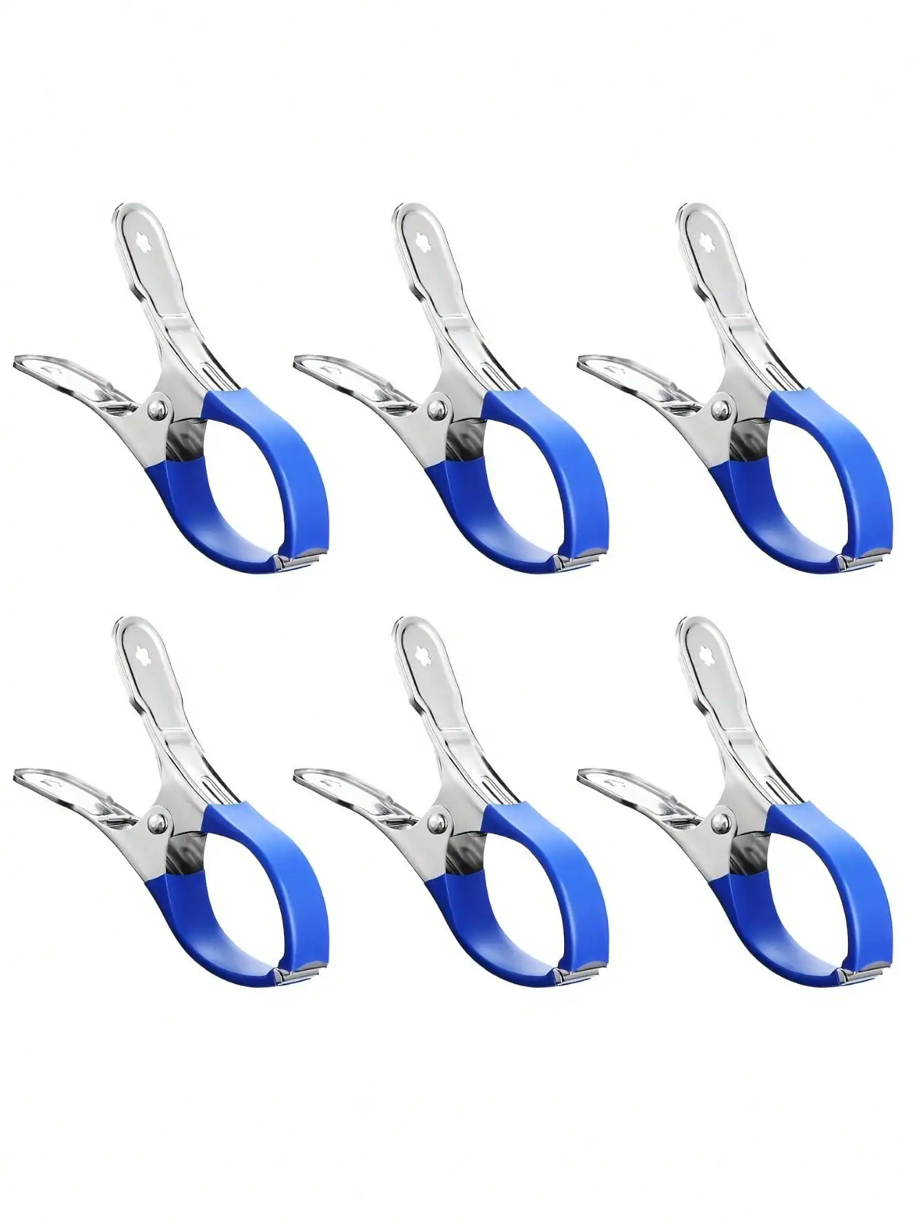↑6 Pieces Durable Stainless Steel Pool Cover Clips with Blue Plastic Handles - Heavy Duty Windproof Spring Clips for Secure Above - TopDealBox
