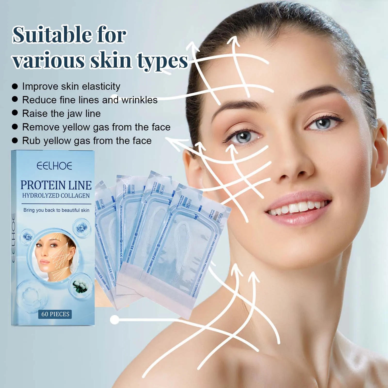 ↑60Pcs Gold Protein Line Fade Wrinkle Firming Facial Filler No Needle Absorbable Smoothing Hydrolyzed Collagen Thread Serum - TopDealBox