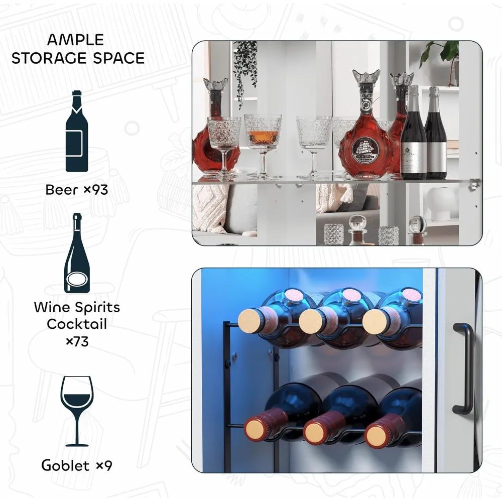↑68.9β€œ Tall Corner Bar Cabinet, Wine Bar with LED Light and Mirror, Farmhouse Liquor Cabinet with Adjustable Shelf.Customized - TopDealBox