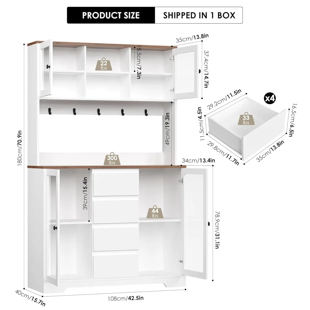 β‘Quick view71" Tall Arched Pantry Cabinet with Innovative Drawer, Kitchen Cabinet with Anti-Tipping Device and Glass Door, Customized134.92 USDUSD 2078.89Hot