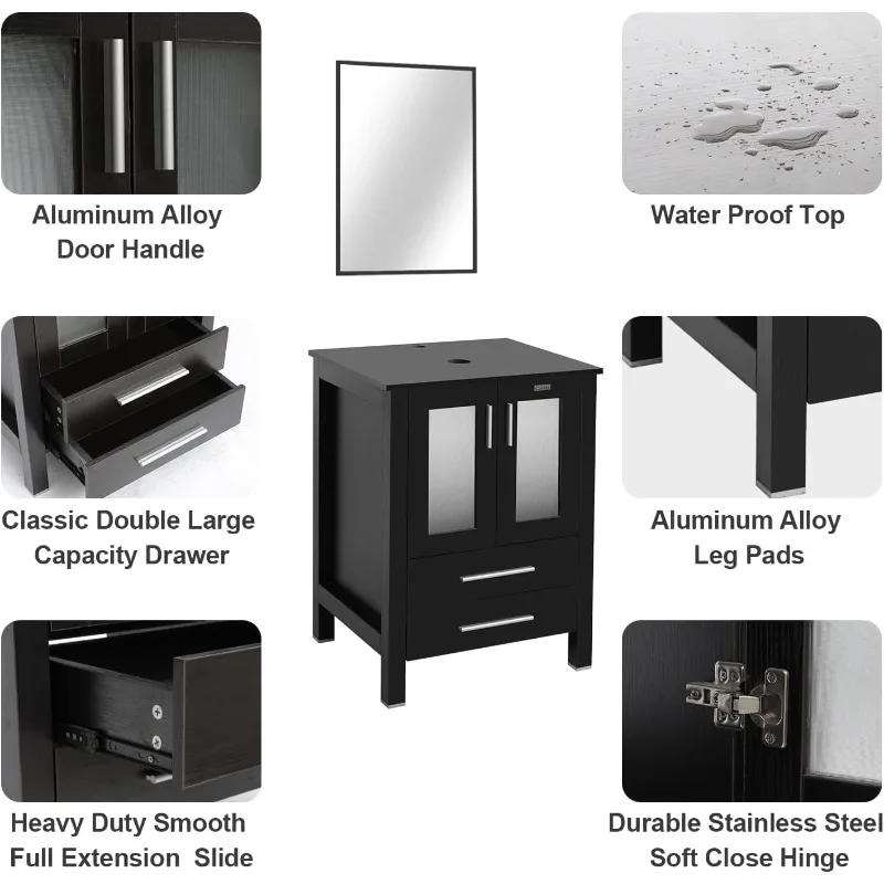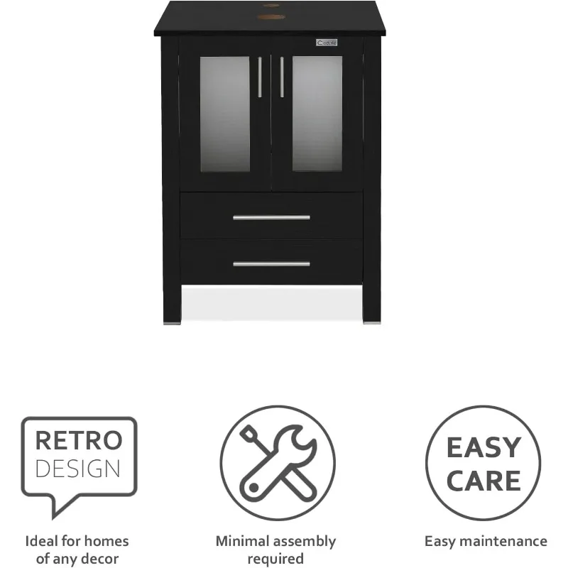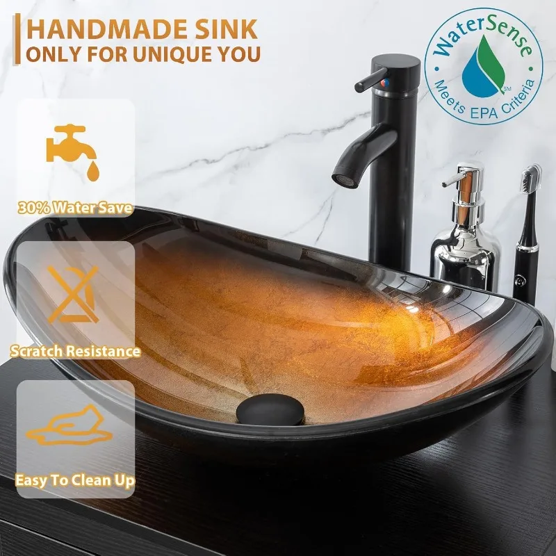 ↑8" Modern Bathroom Vanity Sink Combo Black W/Small Side Cabinets Brown Boat Glass Vessel Sink & Water Save Faucet & Pop - TopDealBox