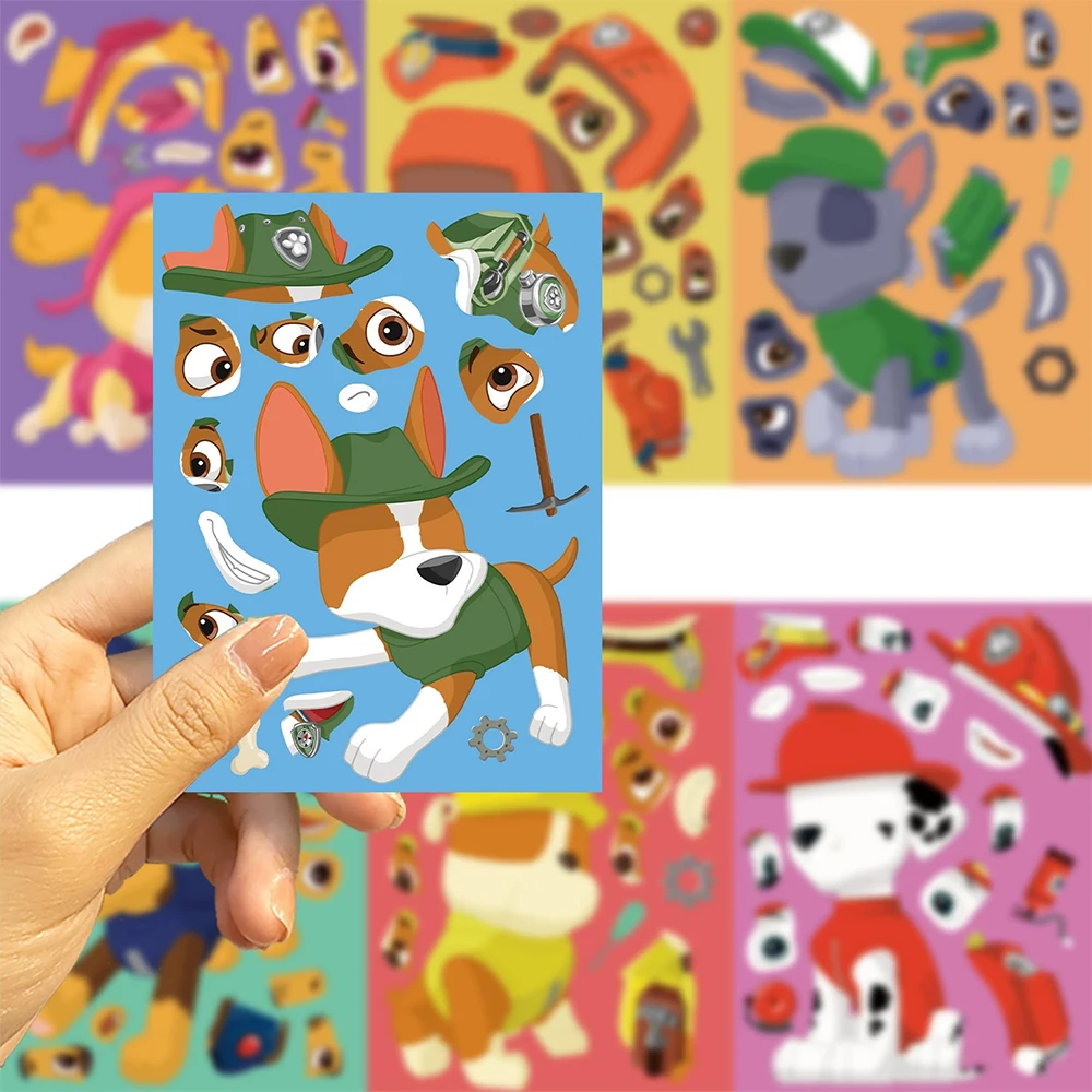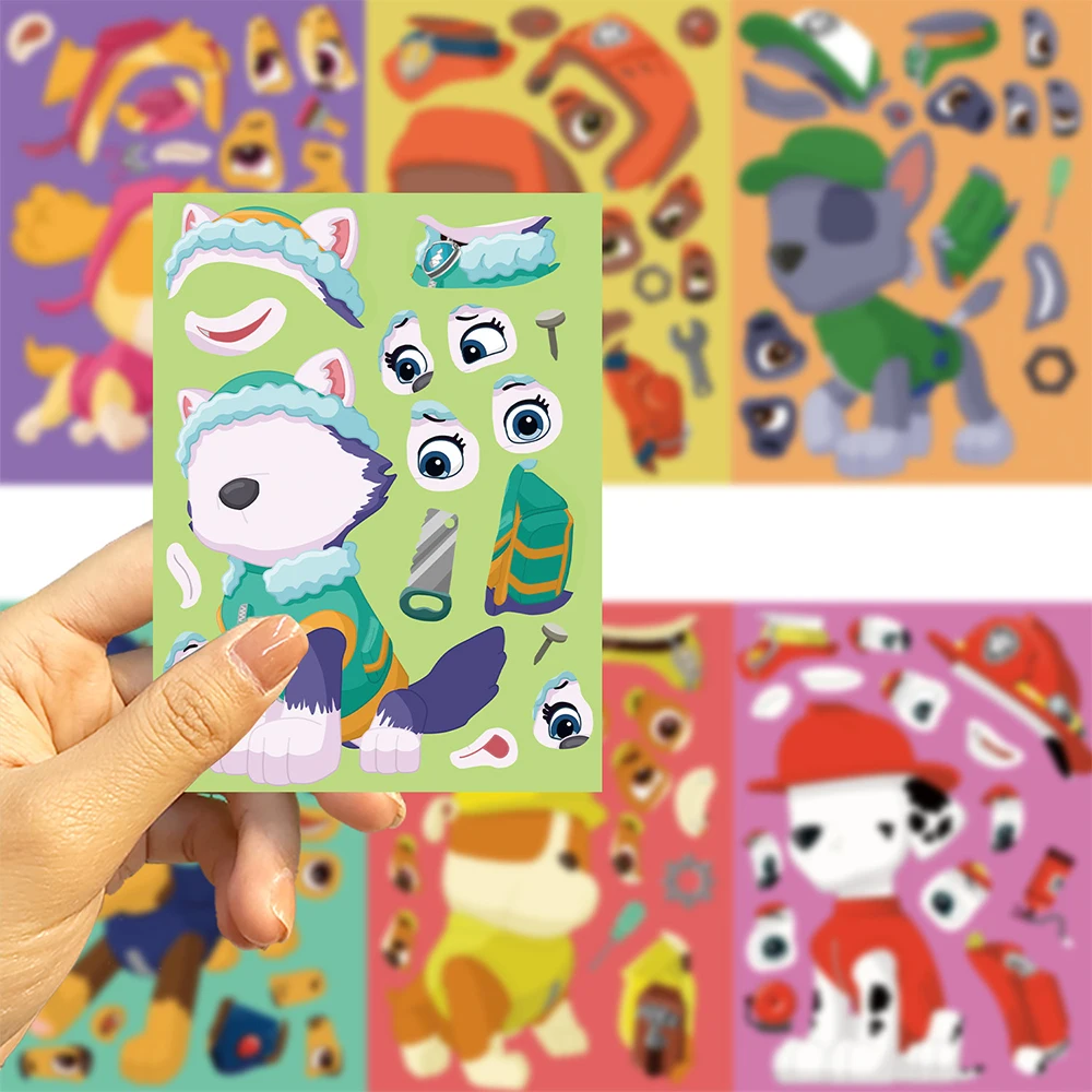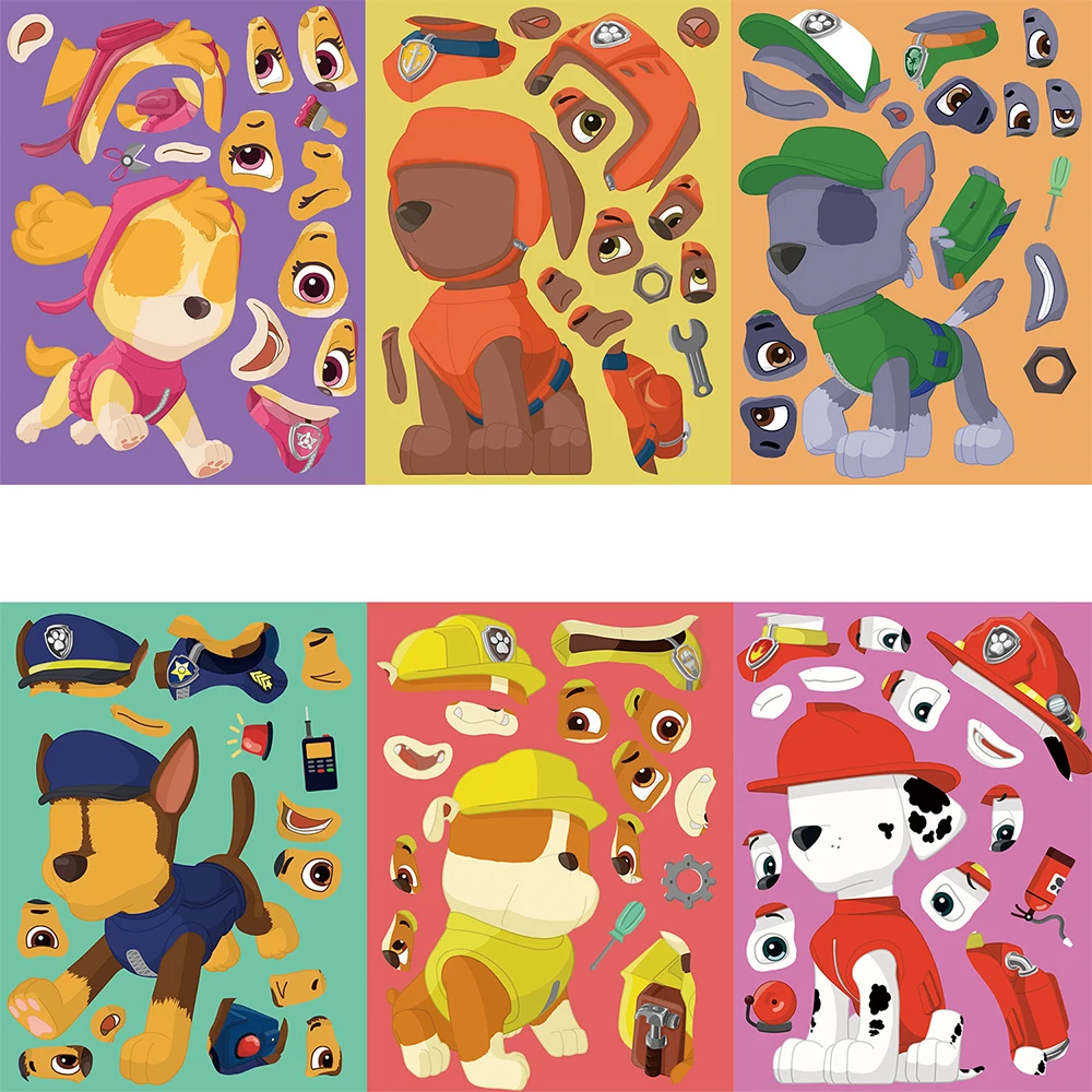 ↑8/16Sheets PAW Patrol Puzzle Anime Stickers Chase Ryder Make a Face Assemble Funny Cartoon Decal Assemble Jigsaw Game Party Gift - TopDealBox