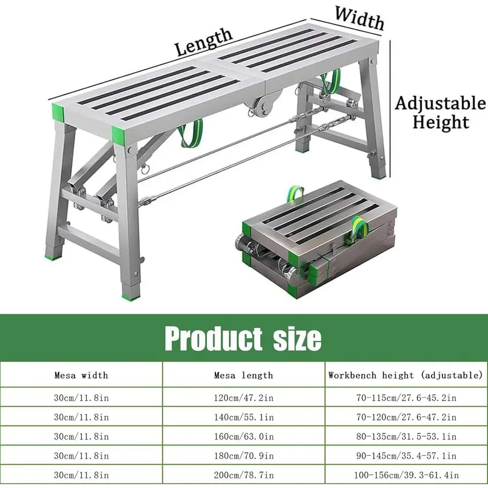 β‘Quick viewAdjustable Height Folding Scaffold Workbench Ladder for Home & Engineering, 200x40cm Platform389.19 USDUSD 8150.47Hot