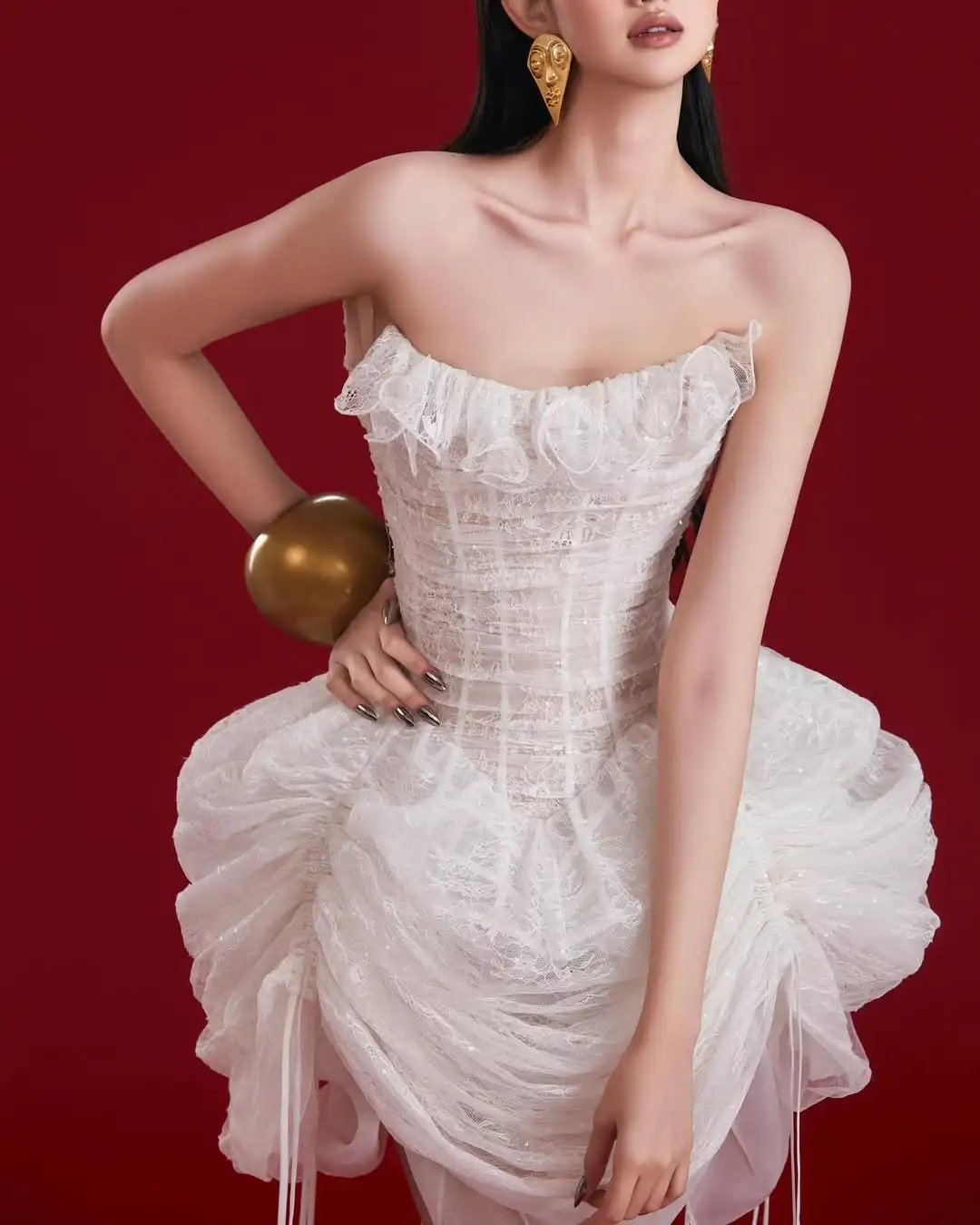 ♡Quick viewBlack Lace Strapless Backless Evening Dress Summer Style Sexy Sleep Gown with Ruffle Hem Satin Skirt Floral Lace Upper Ever Pret67.15 USDUSD 1161.79Hot