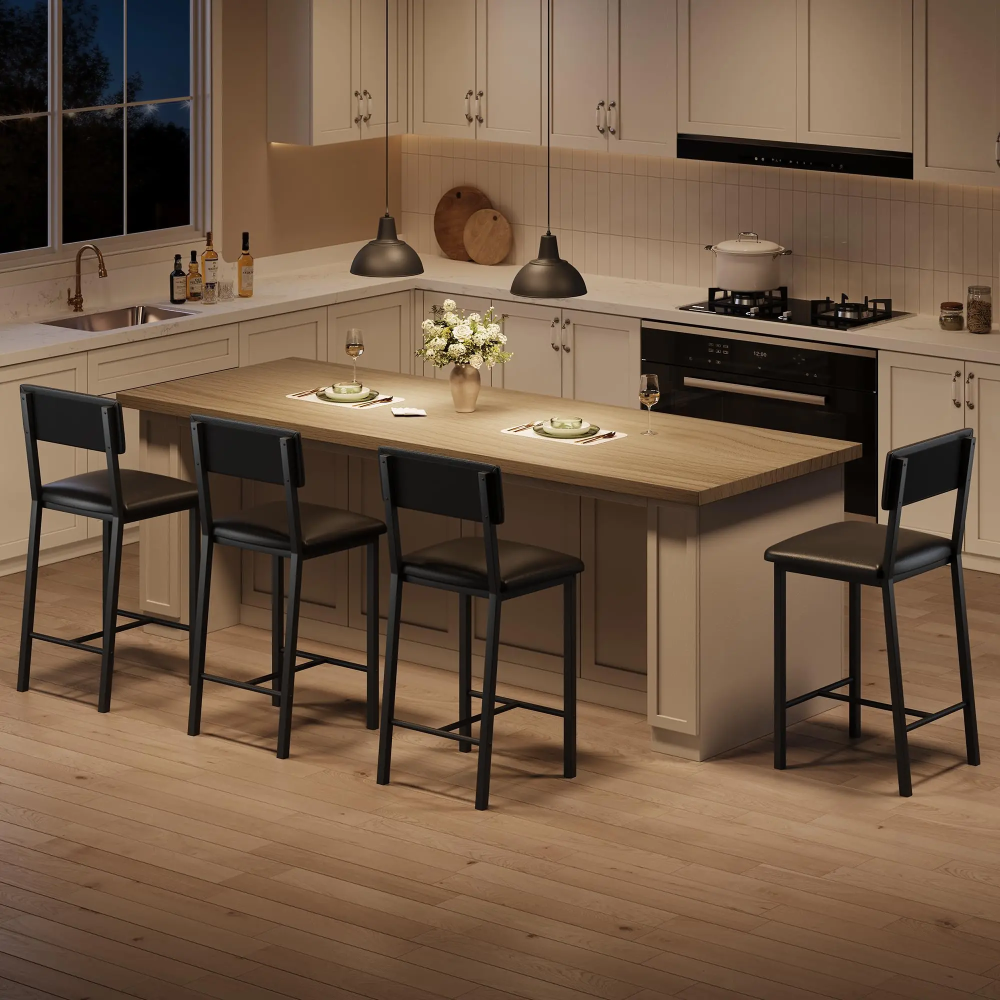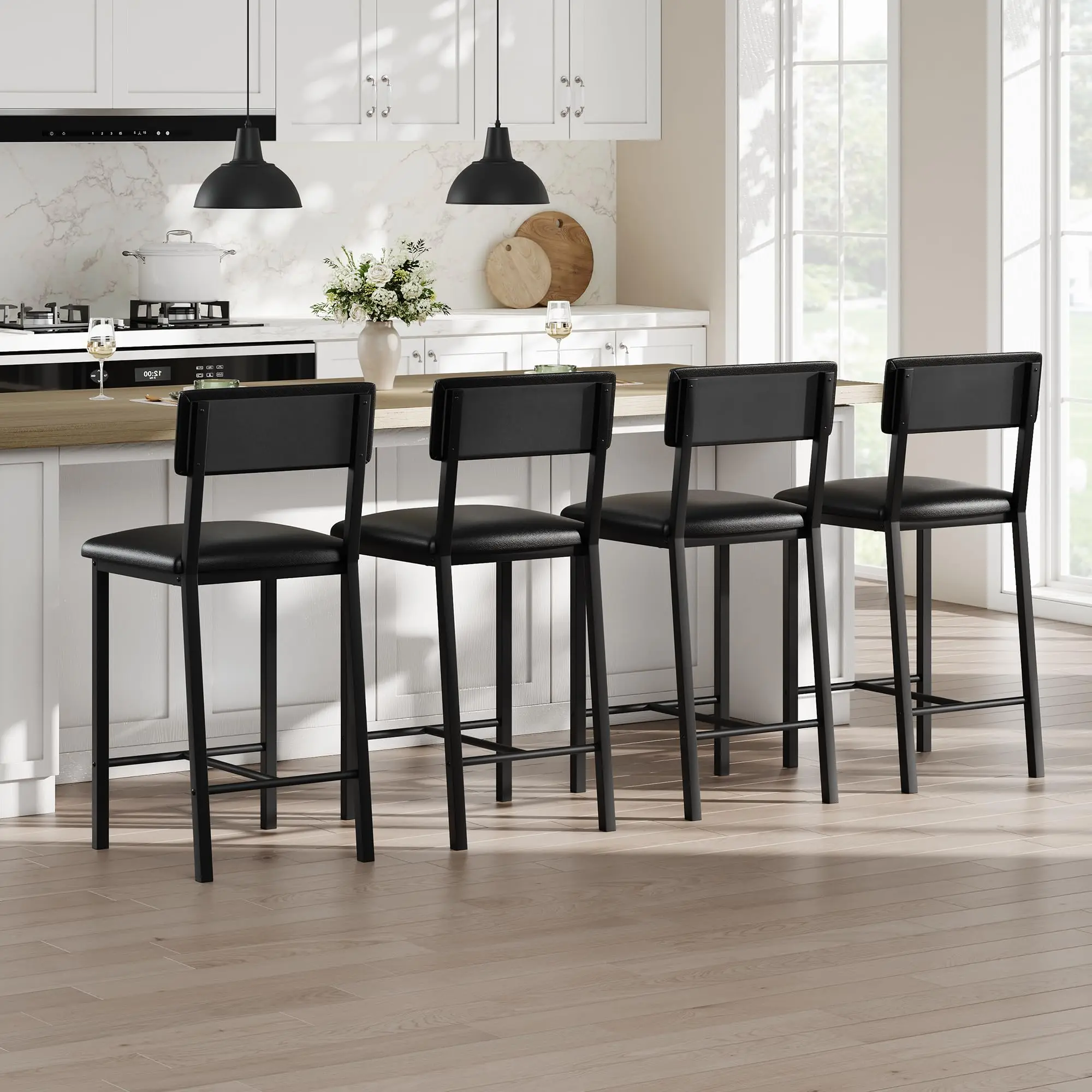 ↑Bar Stools Set of 4, Kitchen Barstools with Thick Cushion, 25 in Counter Height Bar Stools with Backrest and Footrest - TopDealBox