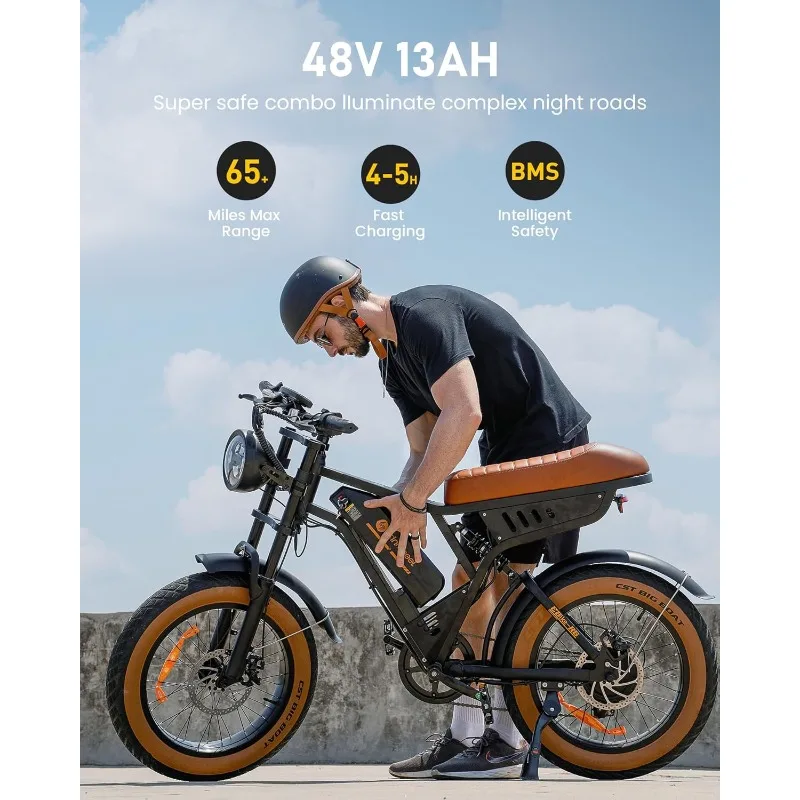 ↑Bike Adults 750/1500W Ebike 20/28MPH, 55-75 Miles Electric Motorcycle with 10.4/13AH Battery, 20" Fat Tire Electric Dir - TopDealBox