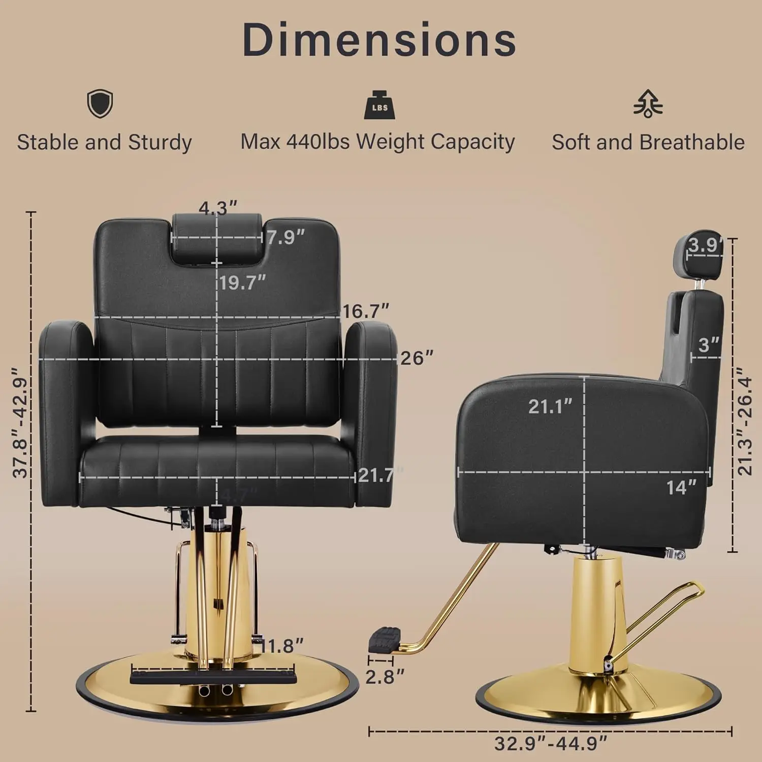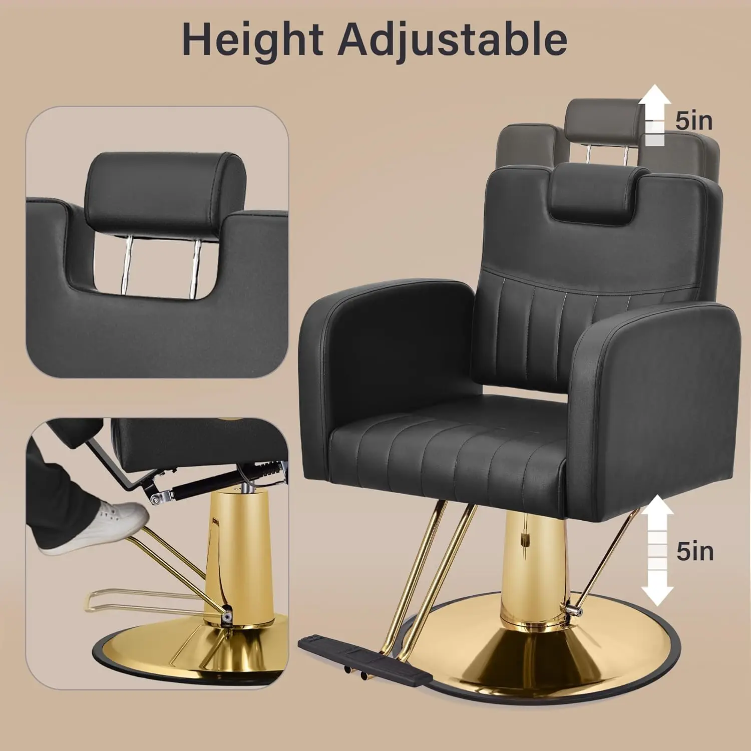 ↑Black Salon Chair for Hair Stylist, Reclining Barber Hairdresser Cutting Chair with Heavy Duty Hydraulic Pump Max Load Weight 44 - TopDealBox