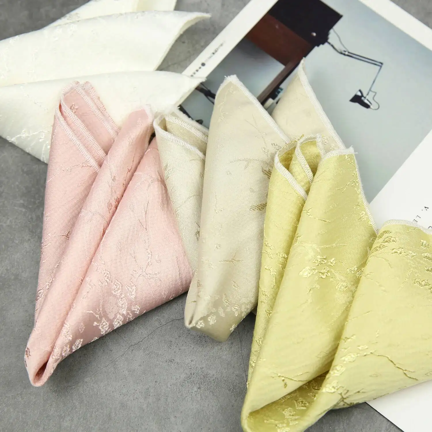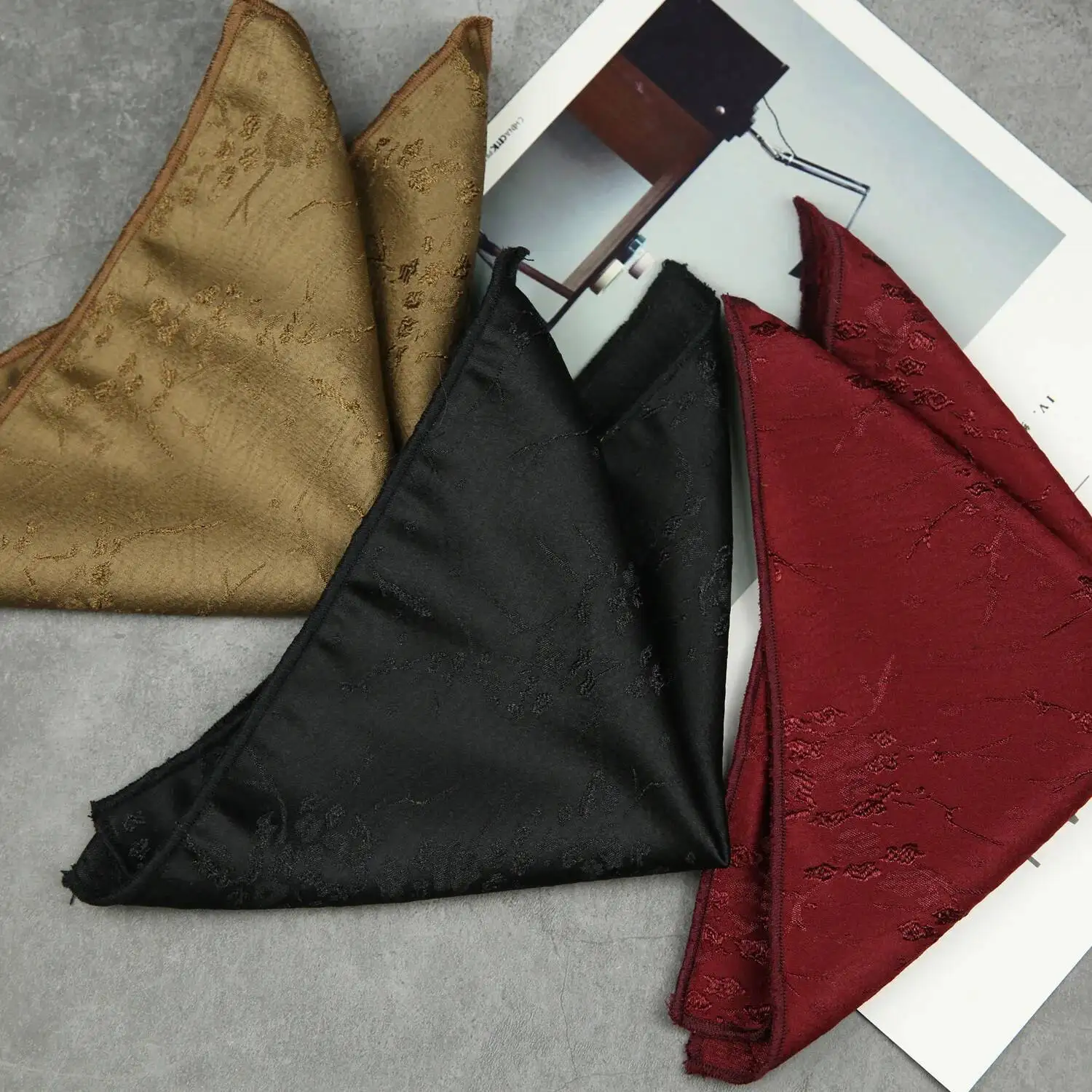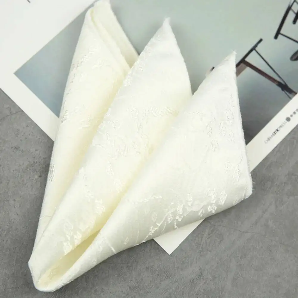 ↑Black White Pocket Square Dark Flower Pattern Solid Color Handkerchief Men Suit Business Chest Scarf Polyester Wine Hanky Cravat - TopDealBox