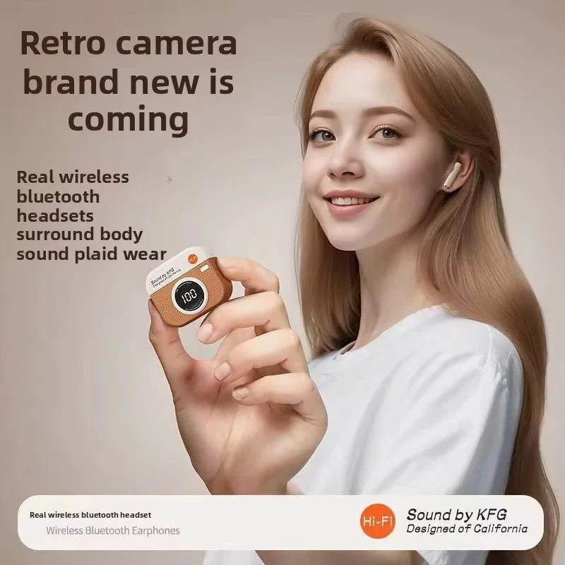 ↑Bluetooth 5.4 vintage fashion wireless earphones, suitable for laptops, tablets, smartphones, and sports fitness, with LED displ - TopDealBox