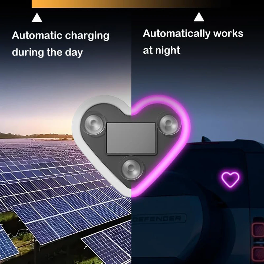 ↑Car Solar Triangle Window Heart-Shaped Light Emitting Heart-Shaped Atmosphere Light Interior Wiring Free Led Atmosphere Ligh - TopDealBox