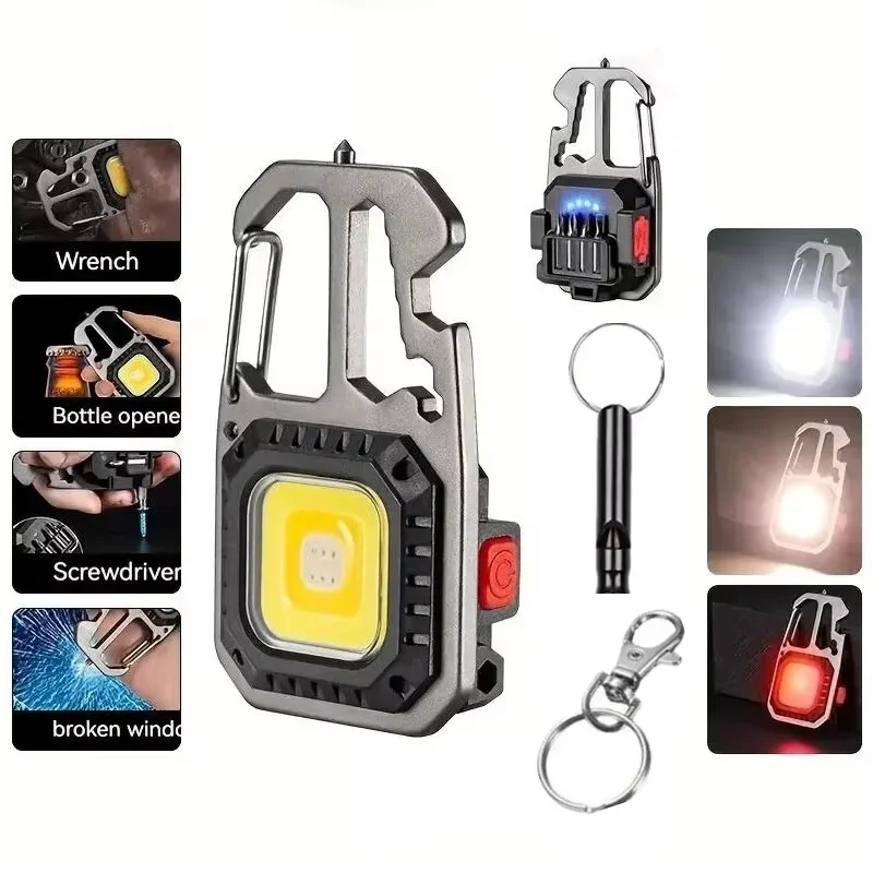 ↑COB Keychain Work Light with Battery Display 8Mode Rechargeable High Lumens Portable LED Light for Camping Hiking Running