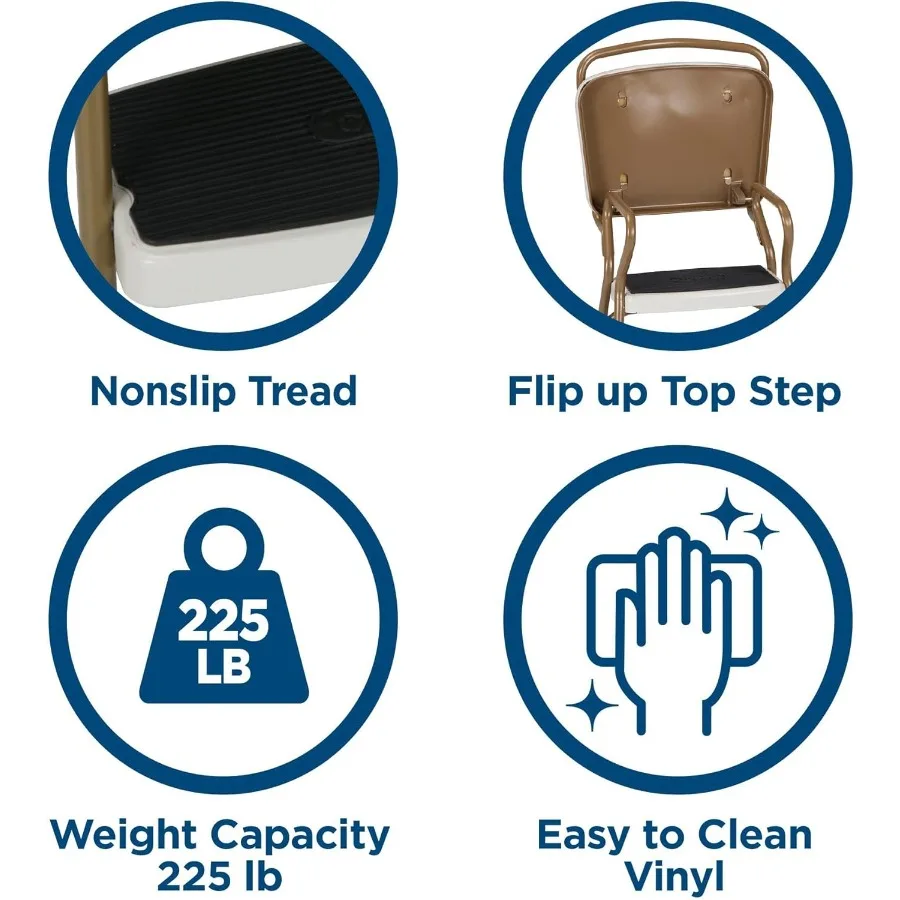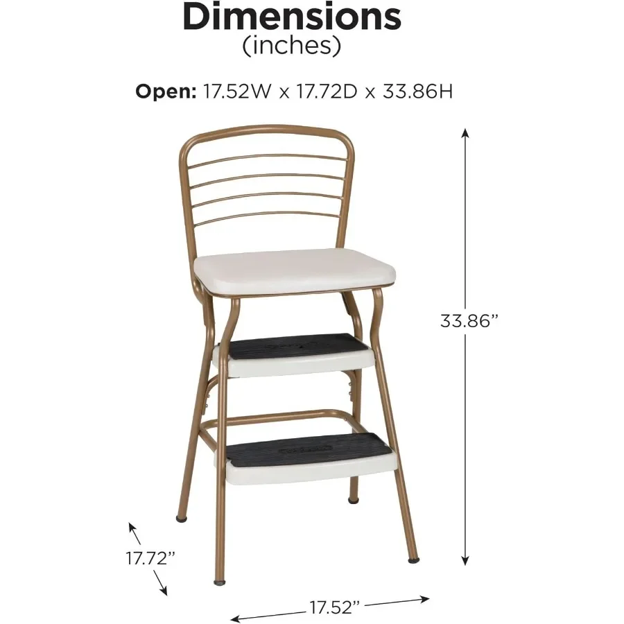 ↑COSCO Stylaire Retro Chair + Step Stool with Flip-Up Seat Gold and Cream - TopDealBox