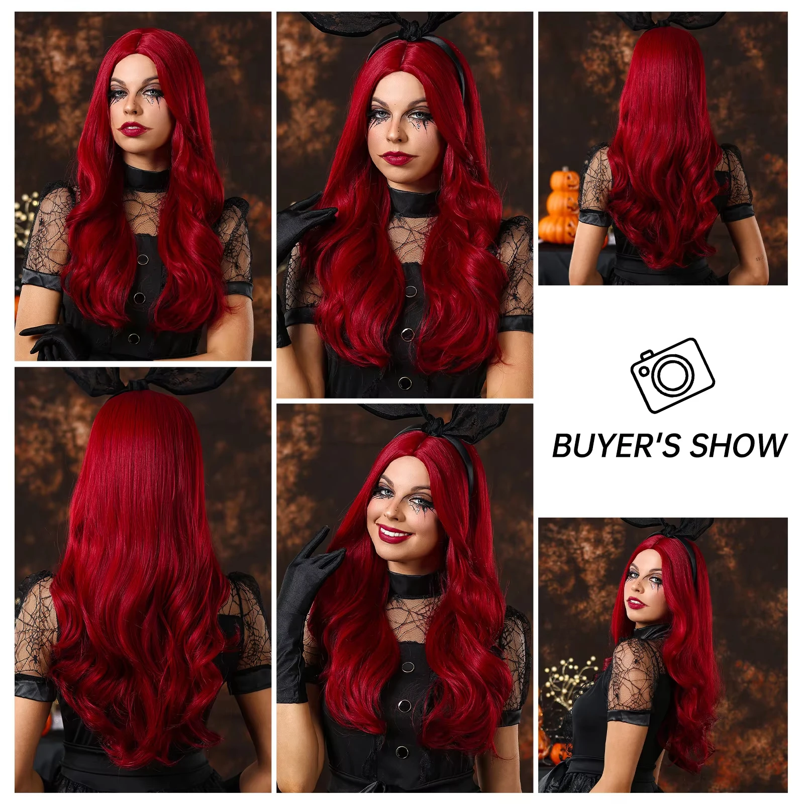 ↑Cosplay Mera Wigs Red Long Wavy Synthetic Hair Wigs Middle Part Natural Looking Wig for Women Party Halloween Wig Heat Resistant - TopDealBox