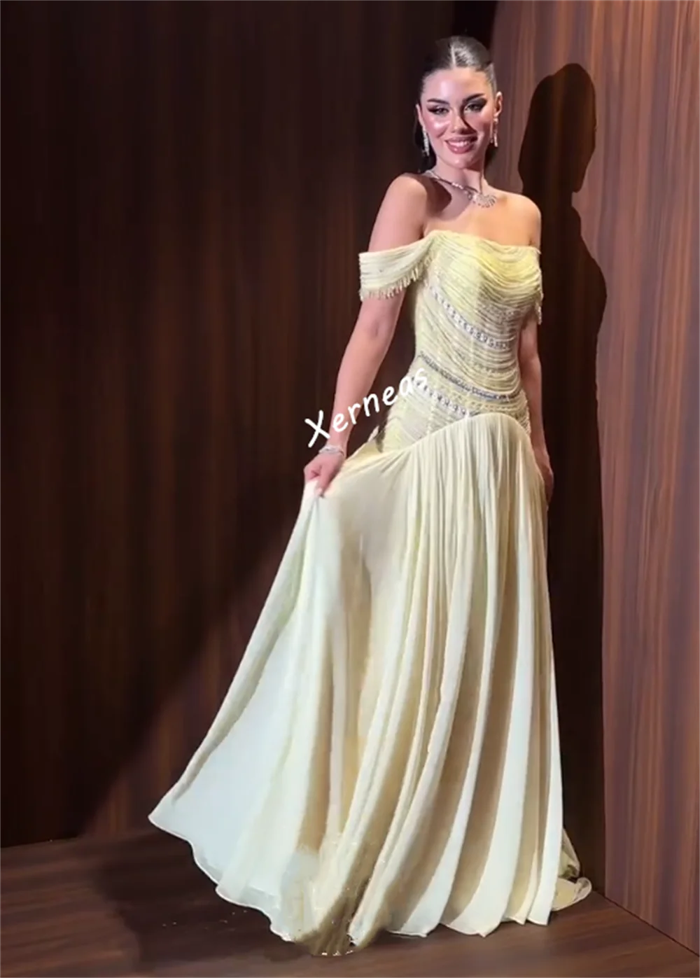 ↑Customized Chiffon Pleat Sparkle Off-the-shoulder A-line Long Dresses Bespoke Occasion Formal Evening Dress Elegant Party - TopDealBox