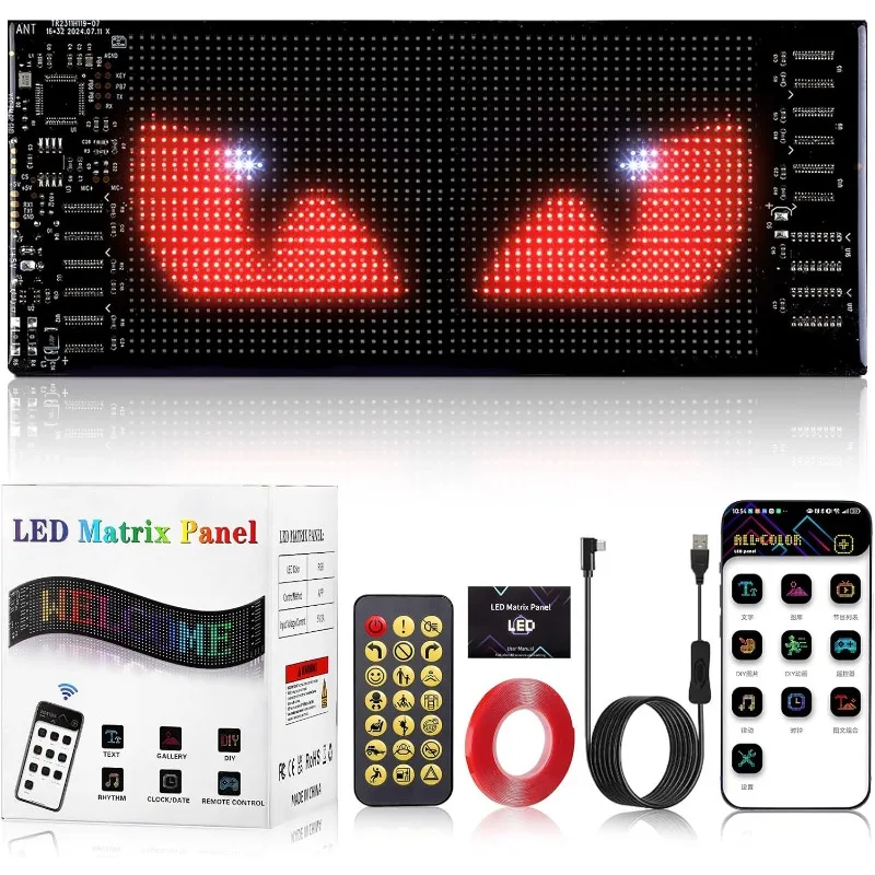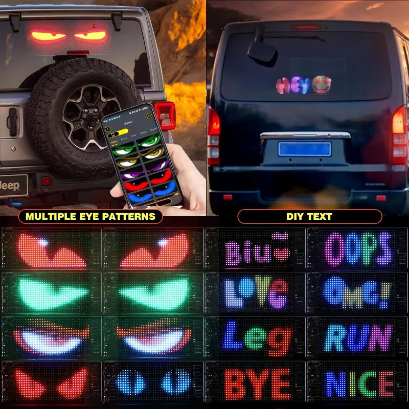 ↑Devil Eyes Light 23.23X4.72in Dynamic Eye Lights Programmable LED Display Flexible DIY Dynamic Text Music Sync Timer for Cars - TopDealBox