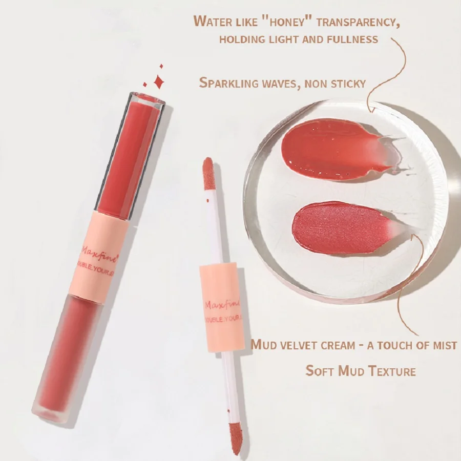 ↑Double Headed Lip Gloss Waterproof Moisturizing Durable Mist Matte Velvet Mirror Lip Gloss Cosmetics - TopDealBox