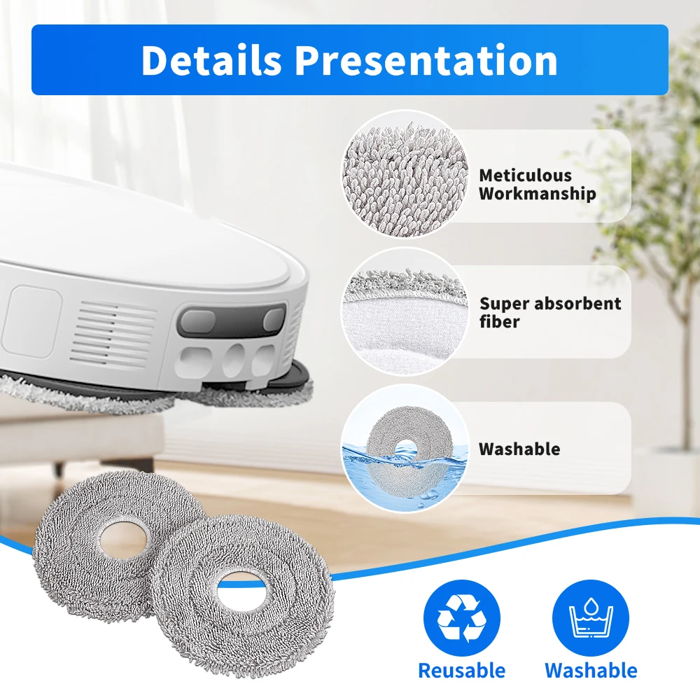 ↑Easy Install Perfect Fit Mop Cloth Kit Mop Pad Part For Xiaomi Mijia 5 Pro OV21CN X10 Plus S10 Plus X20 X20 Plus M30 Pro M30S - TopDealBox
