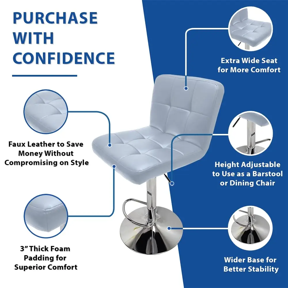 ↑Extra Large Faux Leather Barstools Set of 2 - Adjustable Counter Height Armless Chairs with Larger Base, Swivel Stool for Bar, L - TopDealBox