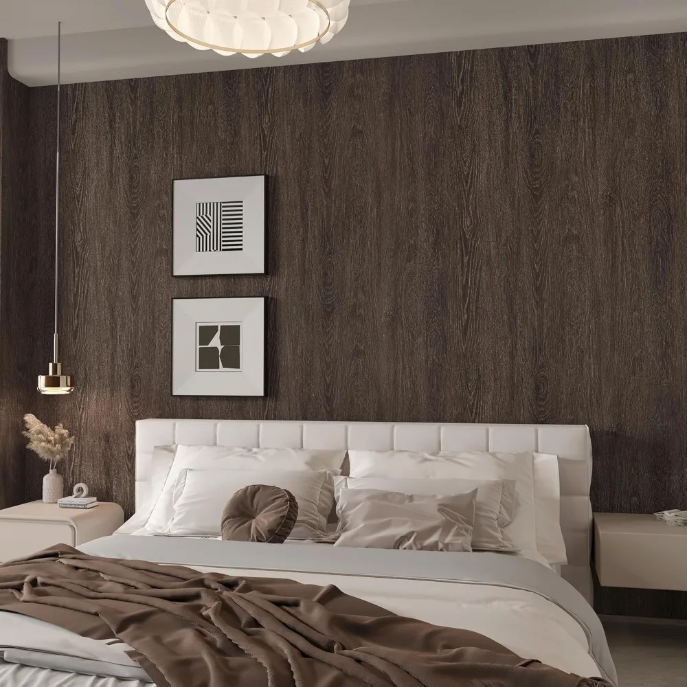Extra Wide Dark Brown Wood Grain Contact Paper - Matte Textured Peel and Stick Wallpaper with Air Guide Slot Design for Black Wa - TopDealBox