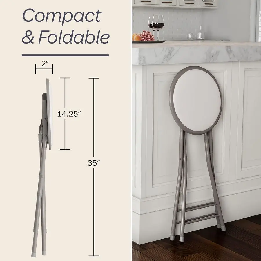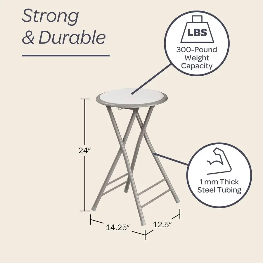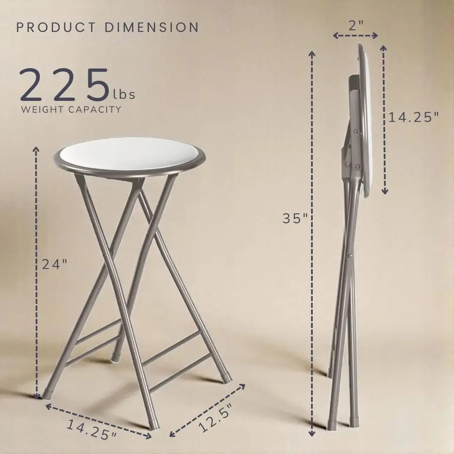 ↑Folding Stool Backless 24Inch Stool with 225lb Capacity for Kitchen or Rec Room Portable Indoor Counter Bar Stools White - TopDealBox