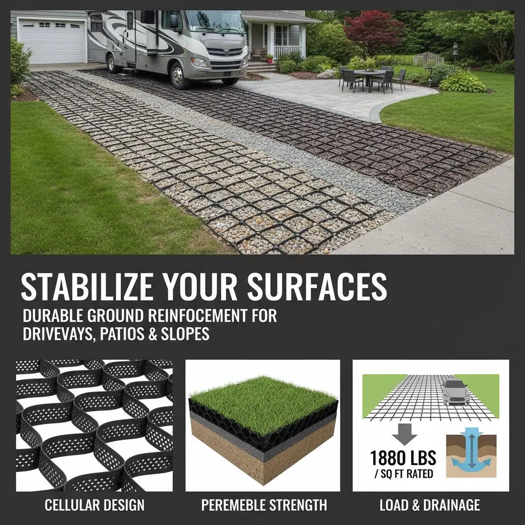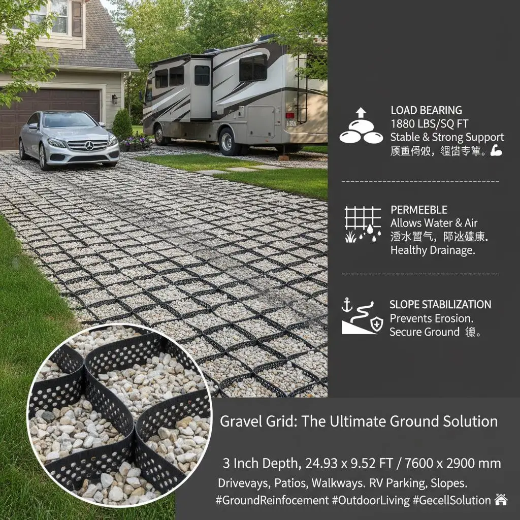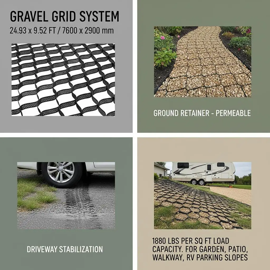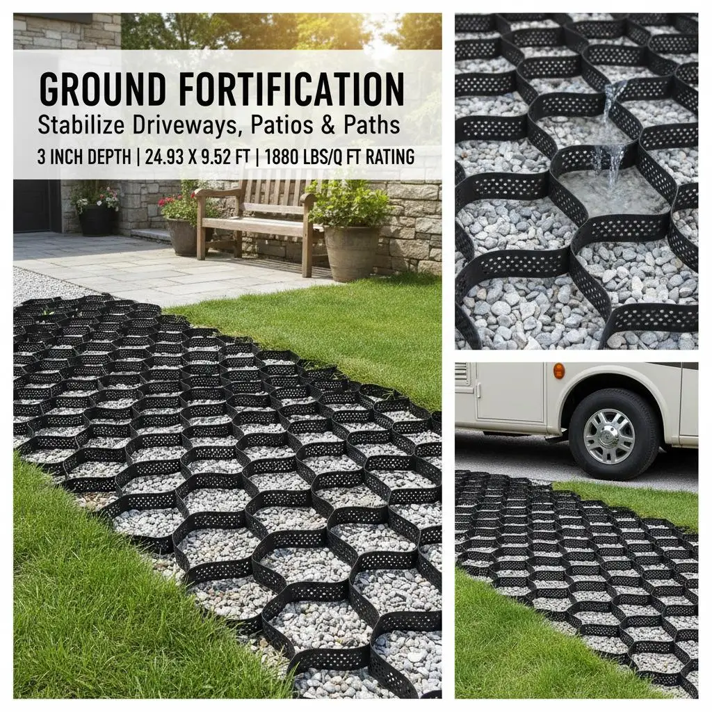 Geocell Ground Grid 25x9.5 FT 3 Inch Depth For Driveway Patio RV Parking Walkway Garden 1880 LBS Load Capacity Permeable Grav - TopDealBox