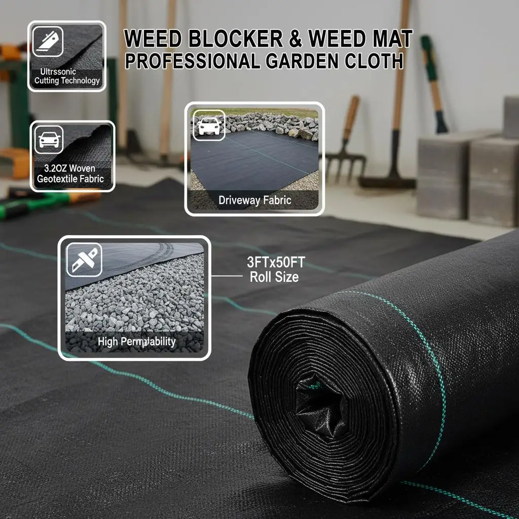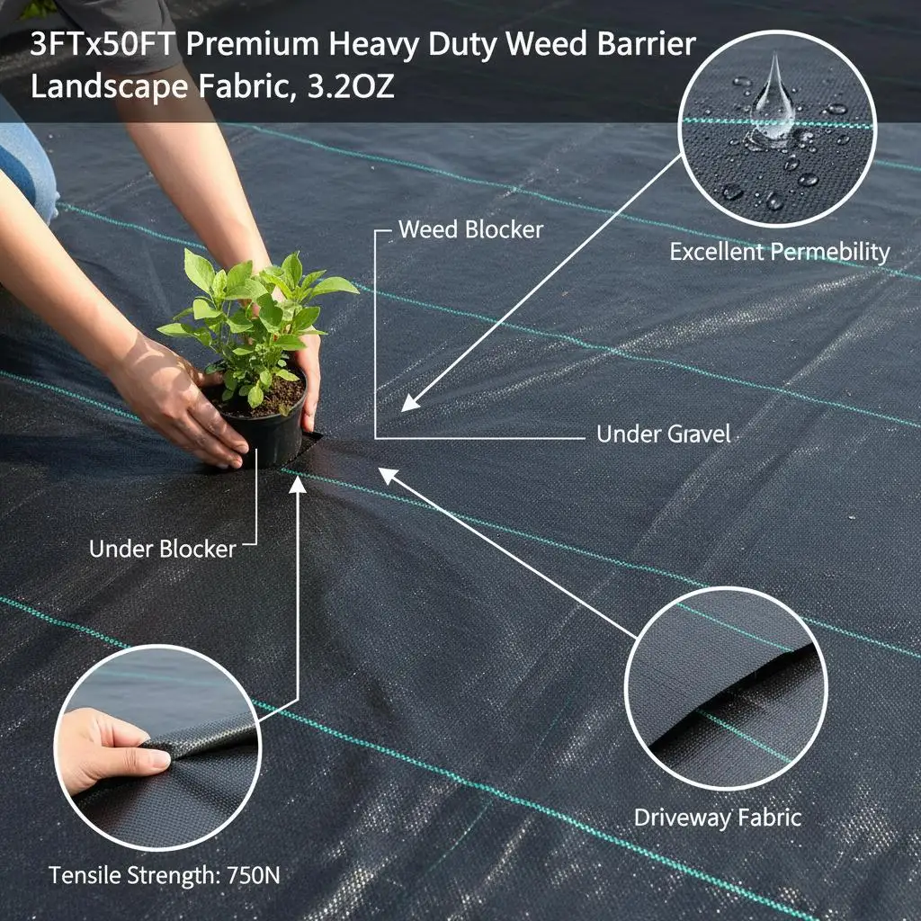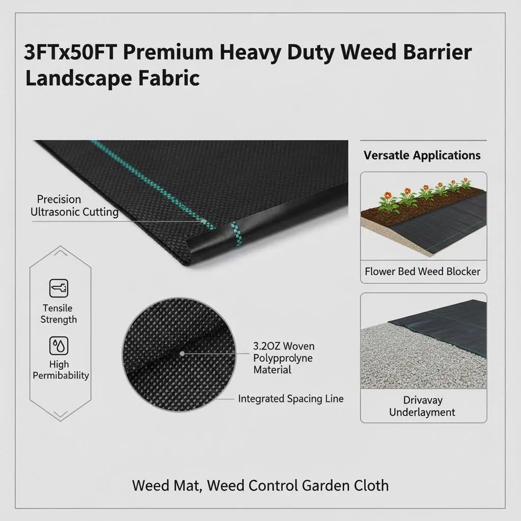 Heavy Duty Ground Cover 3FTx50FT For Garden Bed Flower Border Driveway Edging, 3.2OZ Woven Geotextile High Permeability Weed - TopDealBox
