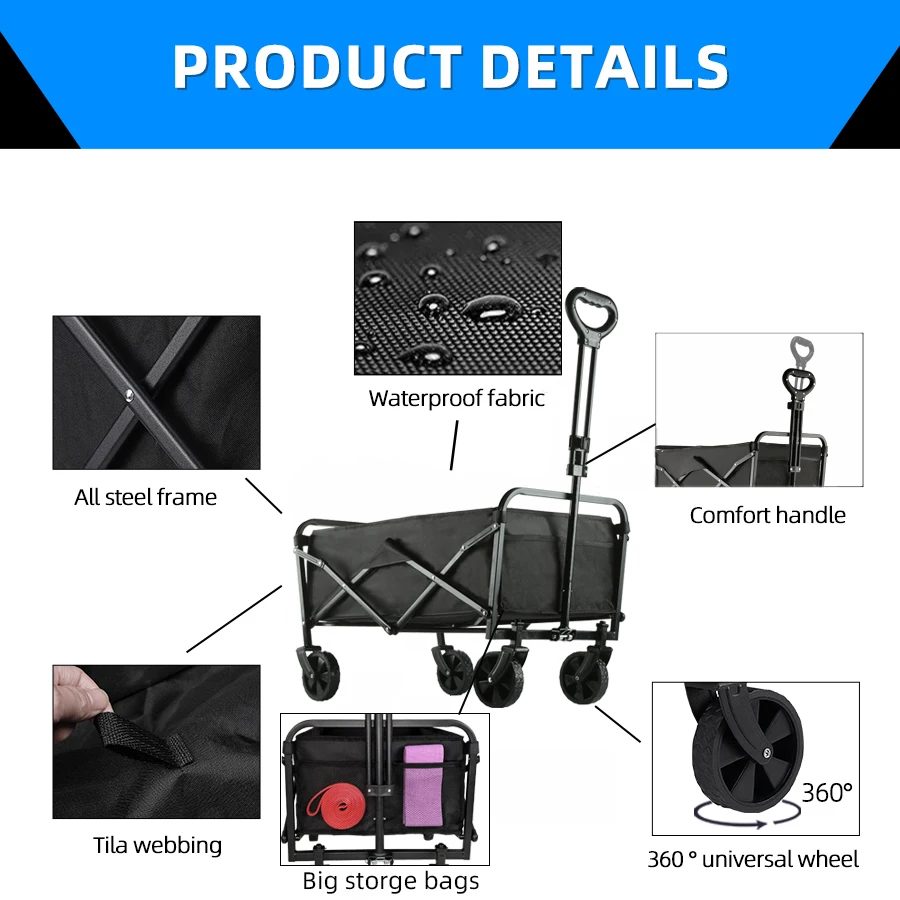 β‘Quick viewHeavy Duty Large Capacity Folding Beach Wagon Outdoor Foldable Wagon For Camping Shopping Collapsible Portable Camping Equipment46.20 USDUSD 687.48Hotβ β β β β β 4.9