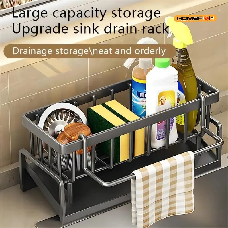 ↑HMJ2 Multi Functional Kitchen Sponge Rack Drain Water Place Dish Soap Organize Rags Capacity Countertop And Store Items - TopDealBox