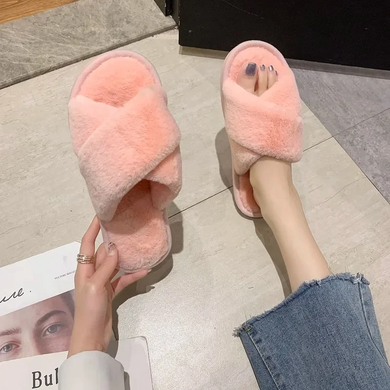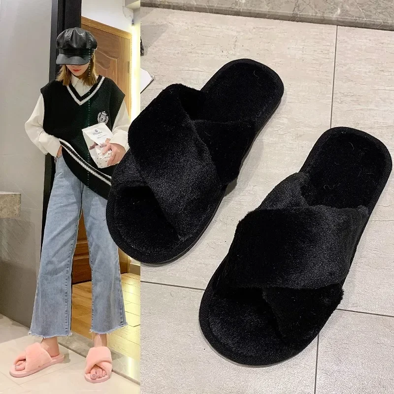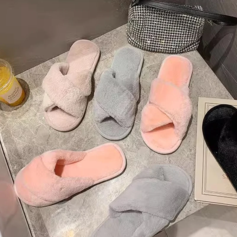 ↑Home Plush Cross Cotton Slippers 2025 New Autumn and Winter Home Slippers for Women Indoor Soft Bottom Comfortable and Non Slip - TopDealBox