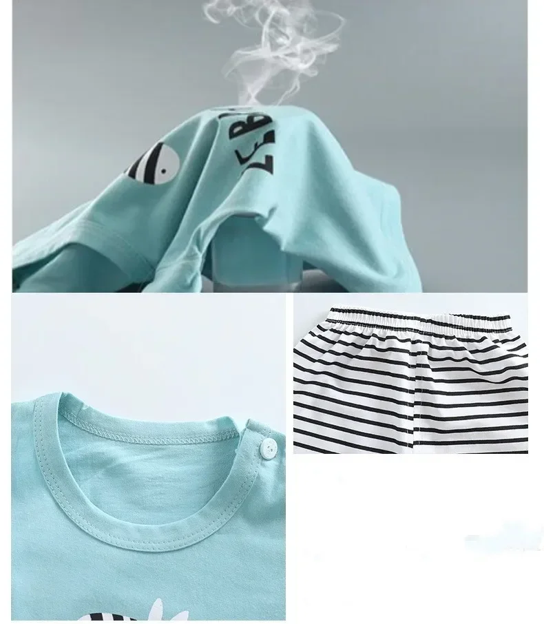 ↑Kid Boy Summer Short Sleeves Tees+Stripe Shorts 2-piece Clothes Set Cartoon Zebra Print Soft Cotton Sports Casual Suit 1-6 Years - TopDealBox