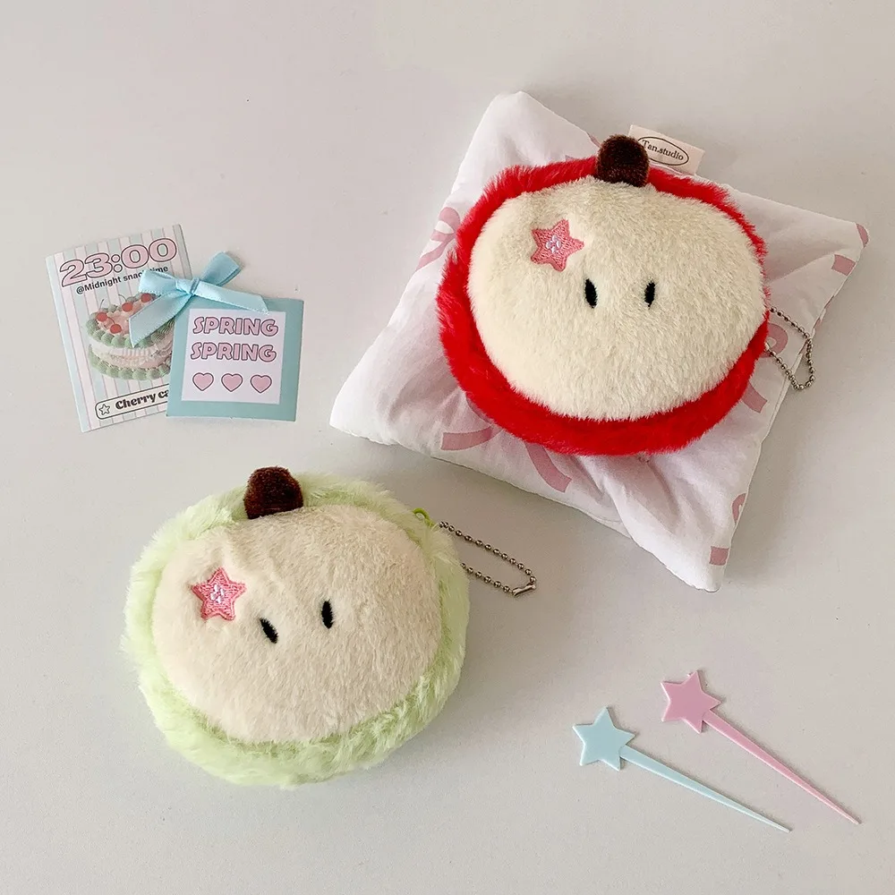 ↑Korean super cute cute apple change bag creative cartoon plush bag pendant mini bag student earphone bag data cable storage smal - TopDealBox