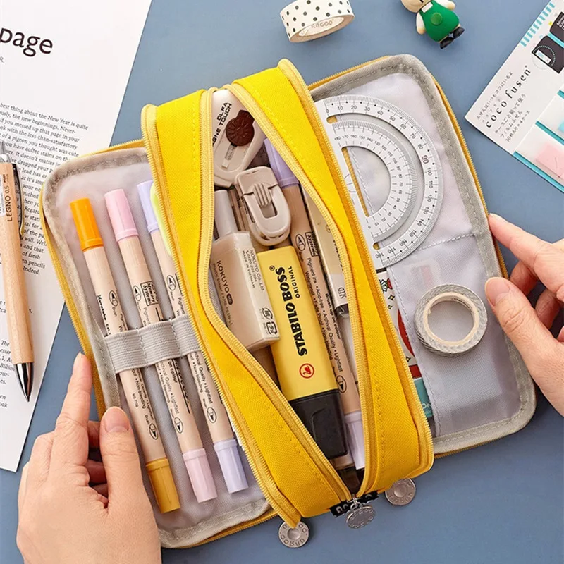 ↑Large Pencil Case Big Capacity Storage Bag, Double-Side Open, Student Stationery, Desk Organizer for School Use - TopDealBox
