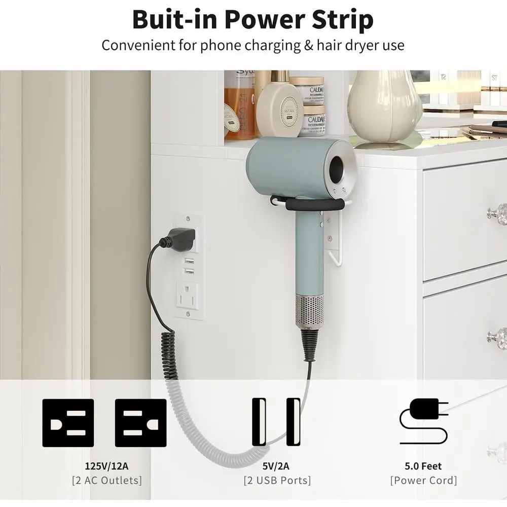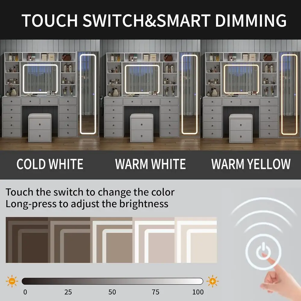 ↑LED-Illuminated Makeup Vanity Desk with 14 Drawers, 10 Shelves, and Hidden Storage, White - TopDealBox