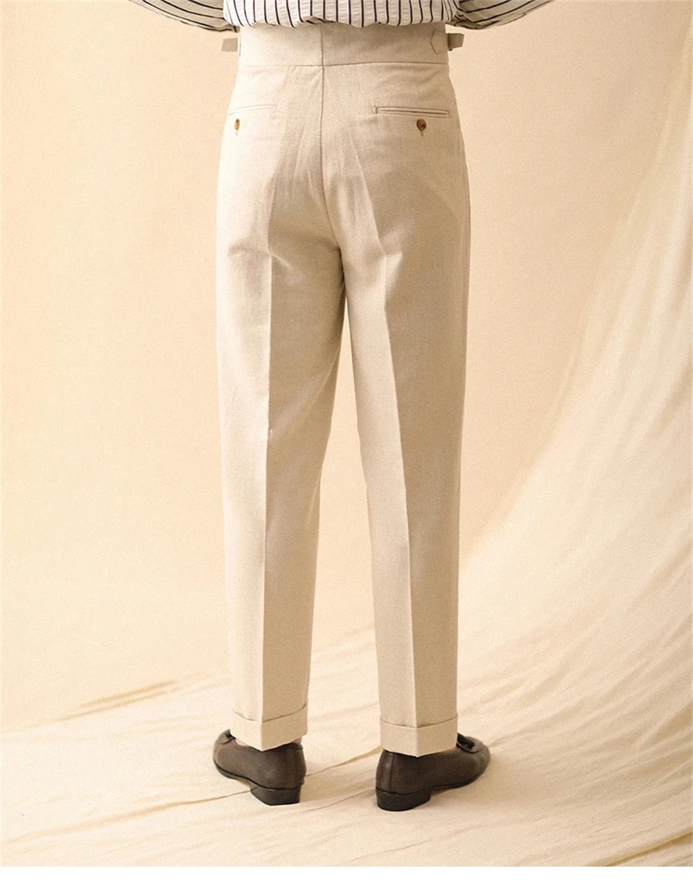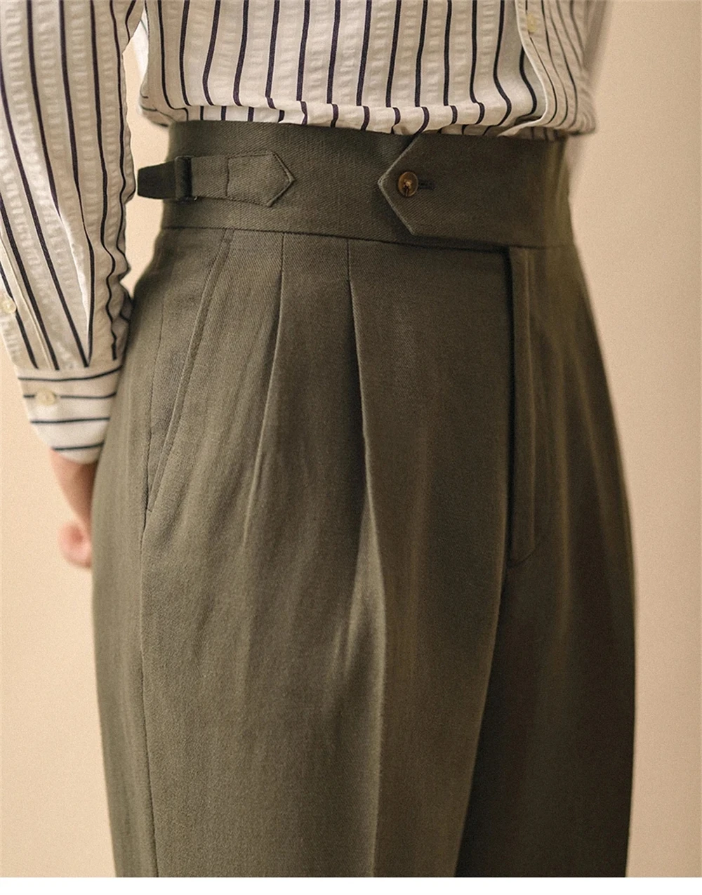 ↑Linen Straight Pant For Men Summer Business Gentleman Naples Pant Paris Buckle Drape High Waisted Trousers Men Formal Pant - TopDealBox