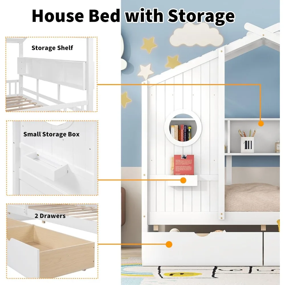 β‘Quick viewTwin House Bed for Kids Wood Low Loft Bed Frame with Windows and Roof, Easy Assembly, for Girls Boys (White+Gray)230.97 USDUSD 3689.23Hot