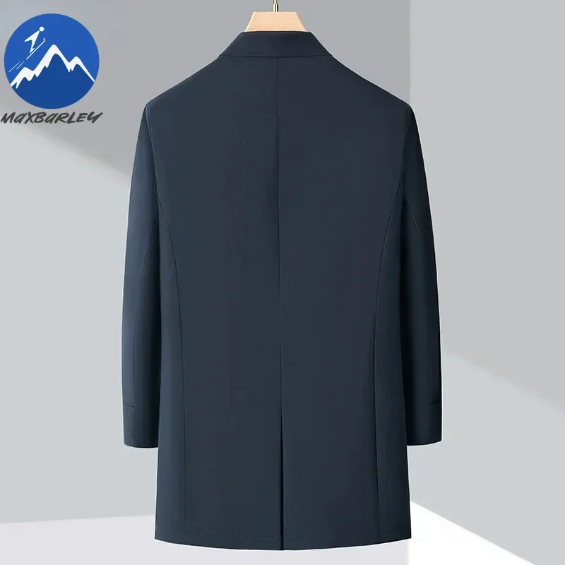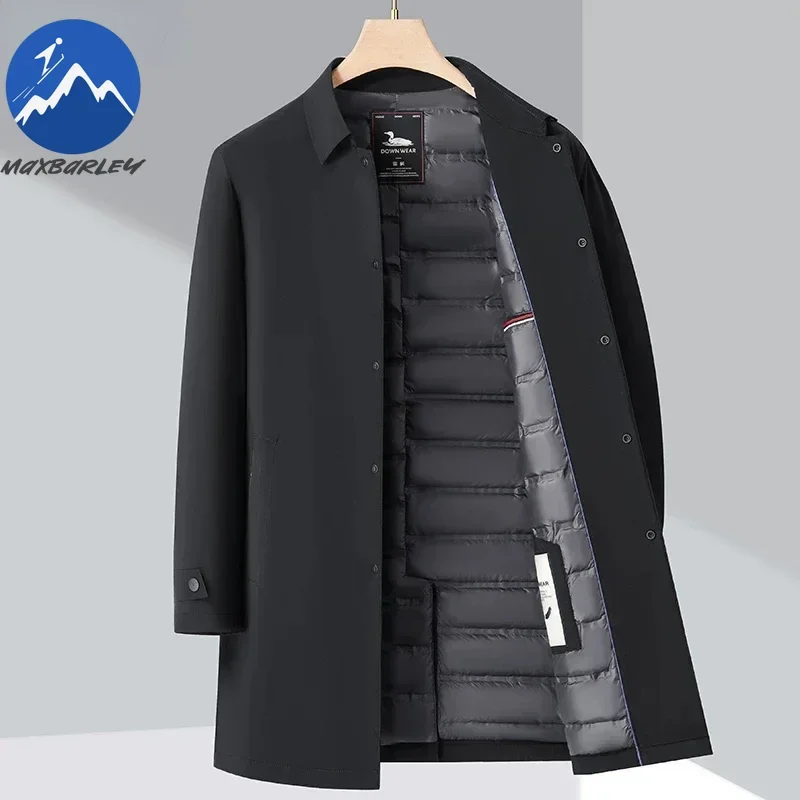 ↑Luxury Brand Long Down Jacket Men's Winter Casual Thick Flip Collar White Duck Down Warm Parka Business Lightweight Trench Coat - TopDealBox