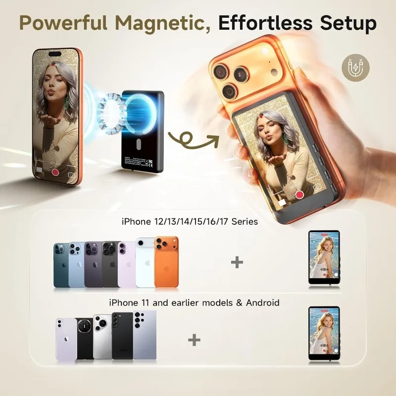 ↑Magnetic Selfie Monitor Screen 4K Magnetic Camera Timer Monitor Wireless Control Vlog Screen for Live Streaming Video Recording - TopDealBox
