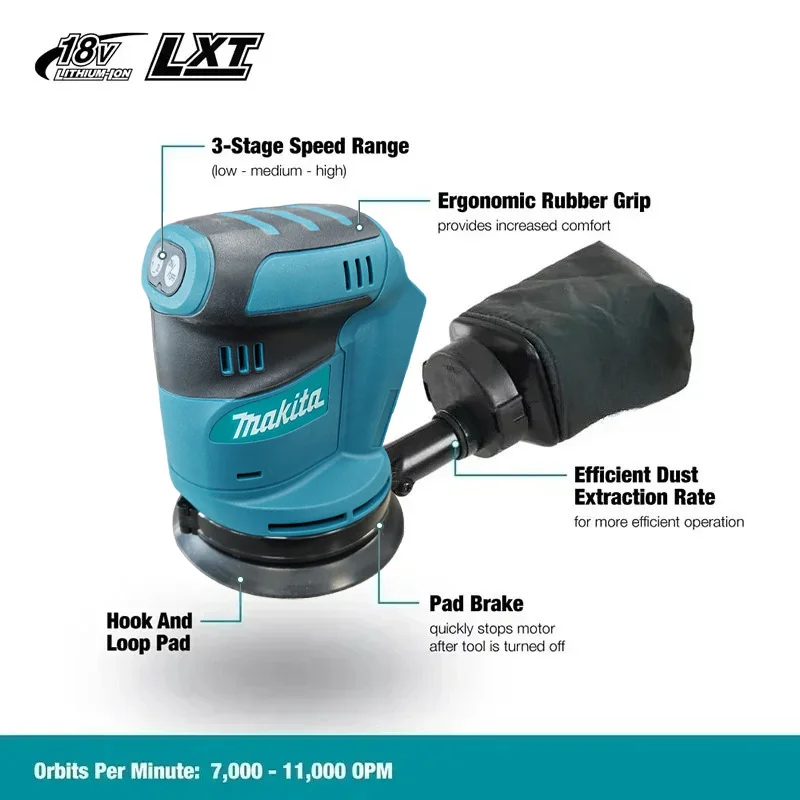 ↑Makita DBO180Z 18V Cordless Random Orbital Sander for Woodworking Putty Polishing - Bare Tool for DIY Professional Use - TopDealBox