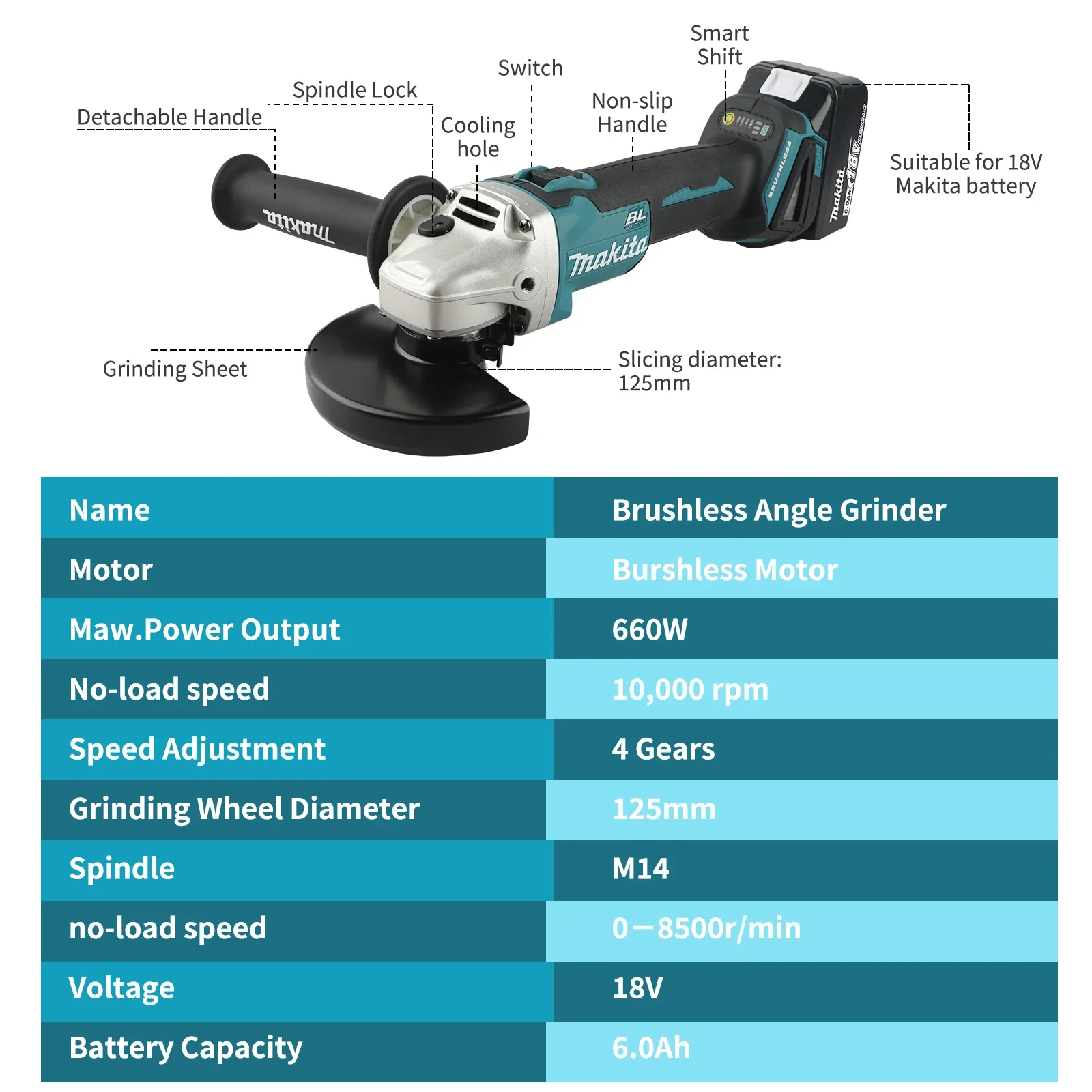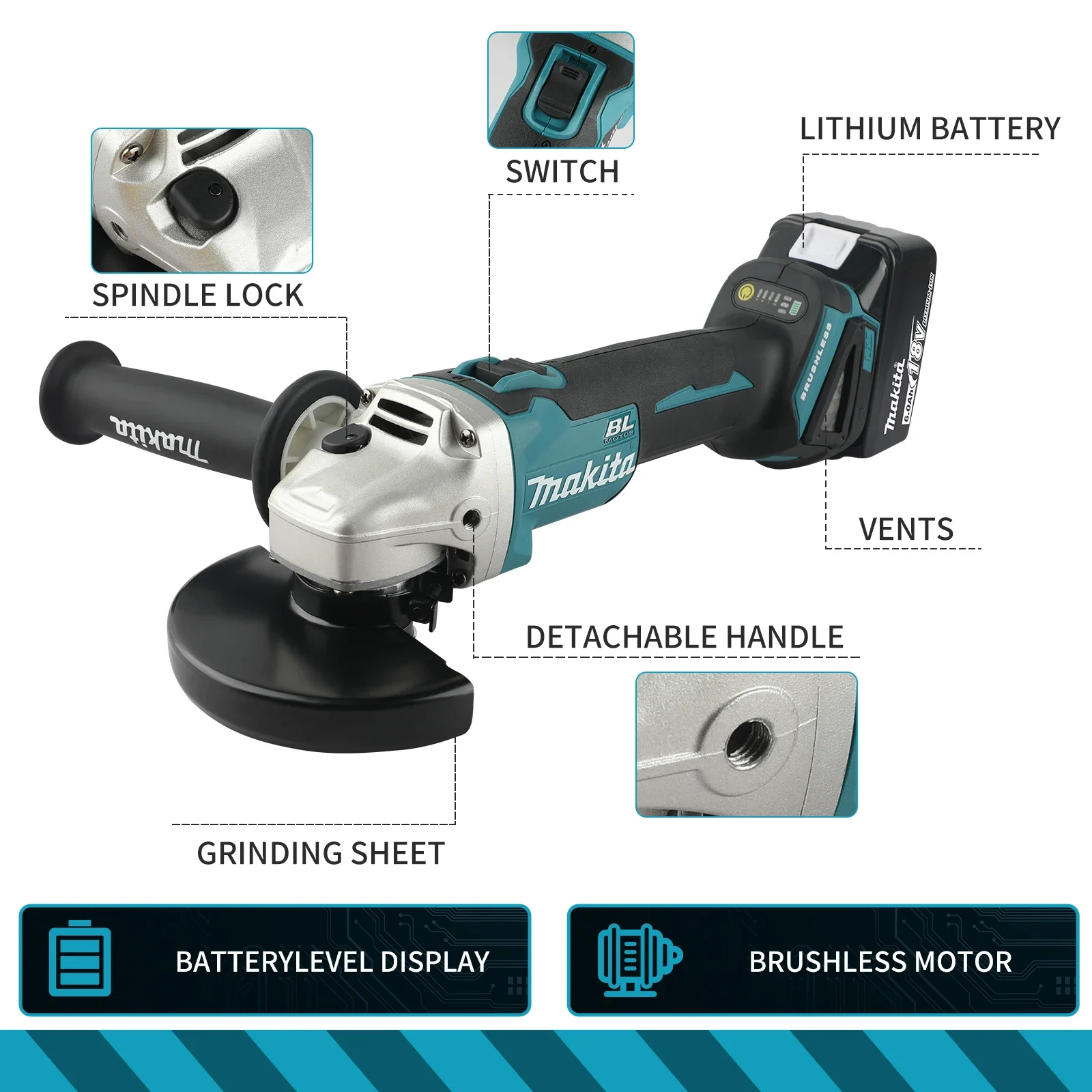 ↑Makita DGA506 18V 125mm Brushless Angle Grinder Electric Polishing Machine Metal Grinding Tool for DIY And Professional Use - TopDealBox