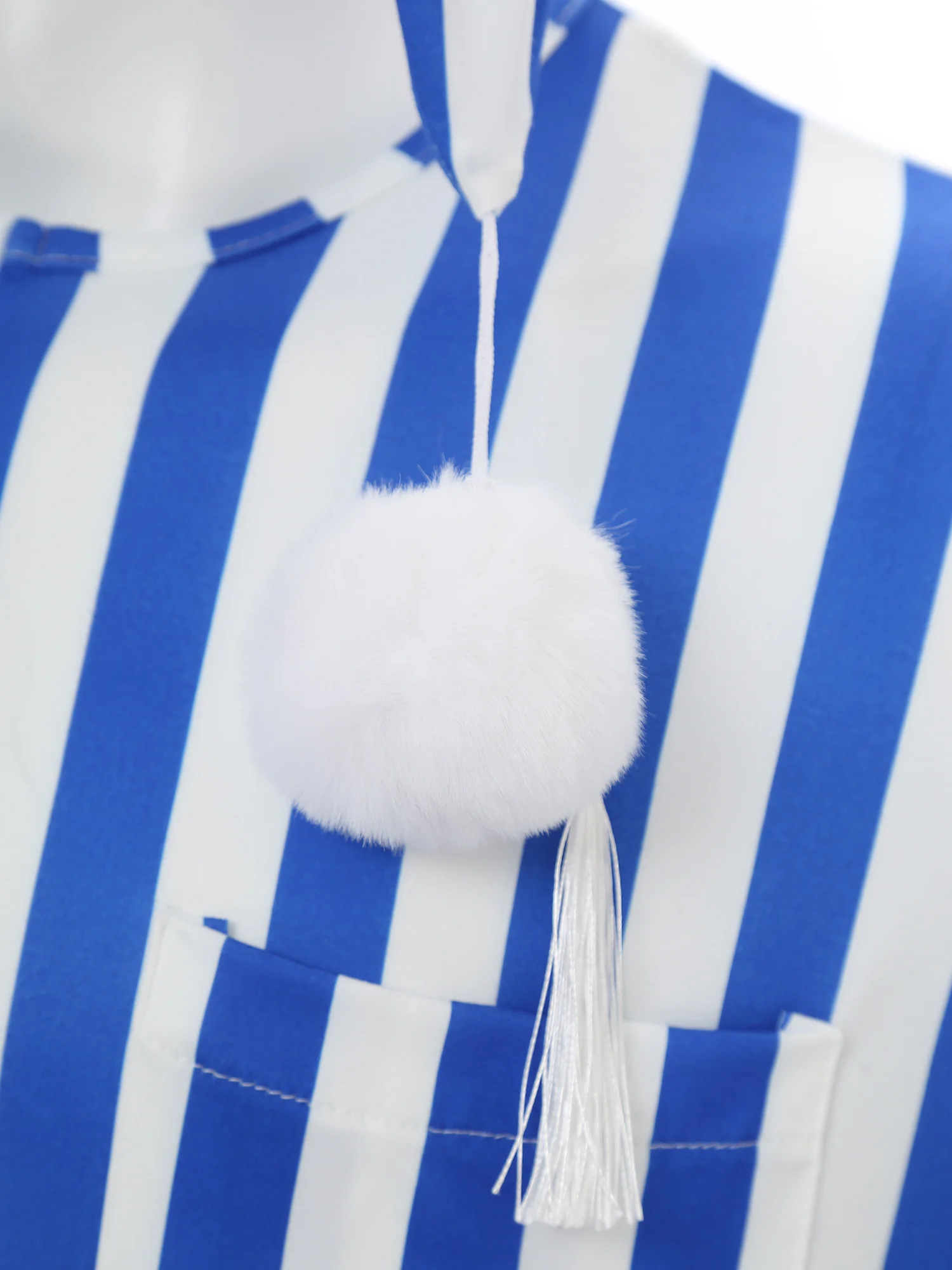 ↑Men Soft Loose Sleepwear Robe Nightdress Casual Striped Printed Long Sleeve Long Robe Nightshirts with Sleeping Cap Pajama Set - TopDealBox