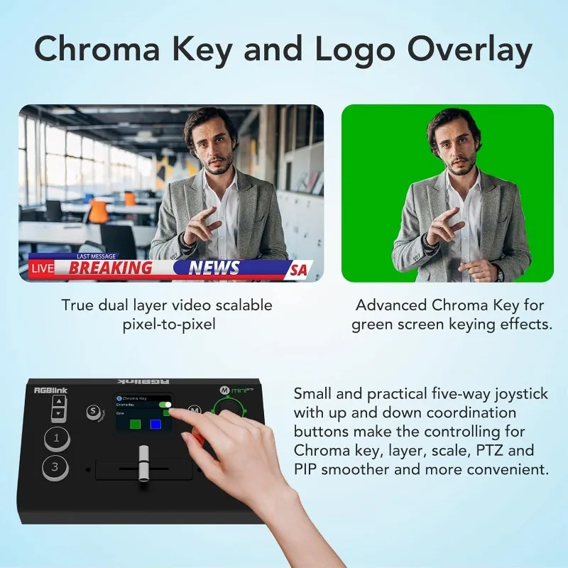 ↑Mini-pro V3 Video Mixer Switcher with 4 x 4K HDMI Inputs, Dual HDMI/USB3.0 Outputs, PTZ Controller with 2.1-Inch Touch Screen - TopDealBox