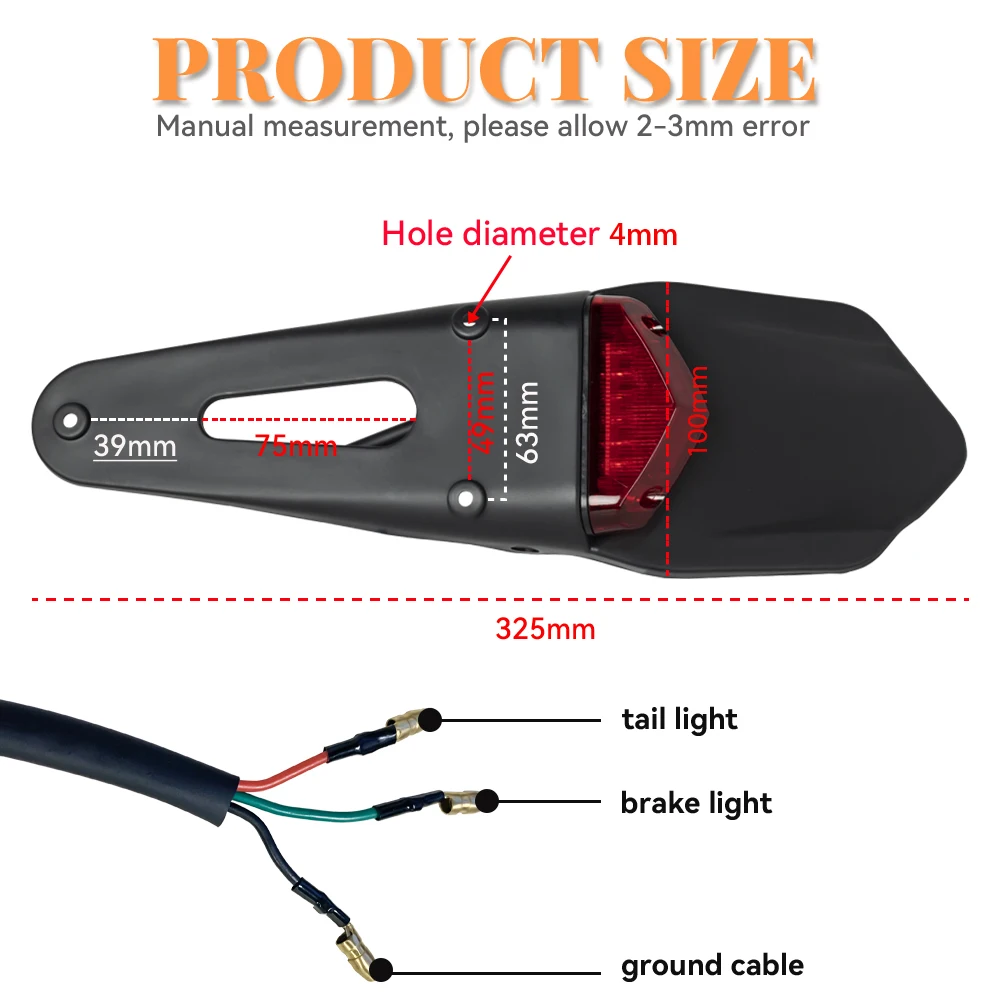 ↑Motorcycle Rear Fender With Brake Lamp 12V For Enduro Off- Road Bike CRF YZ Kawasaki Scooter License Plate Bracket Tail Light - TopDealBox