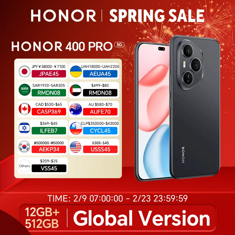 ♡Quick viewHONOR 400 Pro 5G 12GB+512GB Global Version Smartphone 200MP AI Main Camera 6.7'' AMOLED Screen 6000 mAh 100W Wired 50W Wireless563.08 USDUSD 1005.50Hot★★★★★★4.8