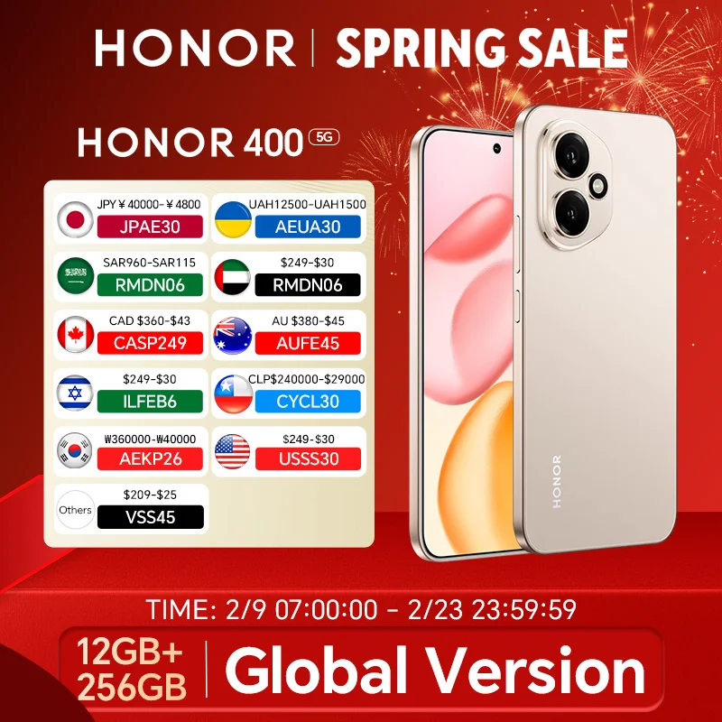 ♡Quick viewHONOR 400 12GB+256GB/512GB 5G Global Version Smartphone 6.55'' AMOLED Screen 200MP Camera 6000 mAh 100W SuperCharge OTG NFC359.56 USDUSD 733.70Hot★★★★★★4.8