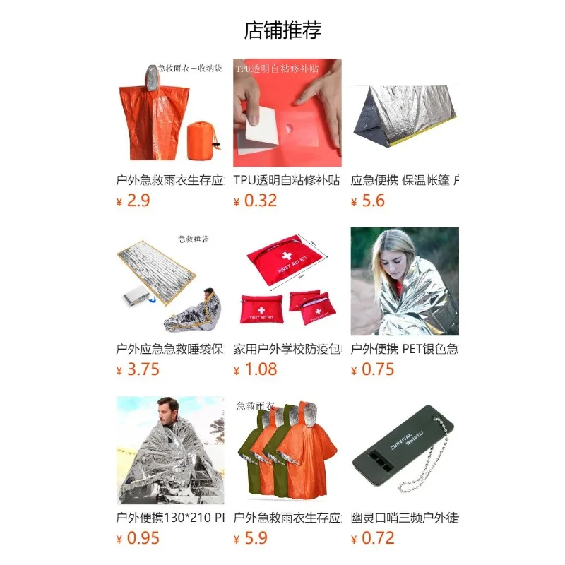β‘Quick viewOutdoor Survival Emergency First Aid Insulation Blanket, First Aid Blanket, Survival Blanket, Camping Tent, Travel Life Blanket6.12 USDUSD 84.74Hotβ β β β β 5.0