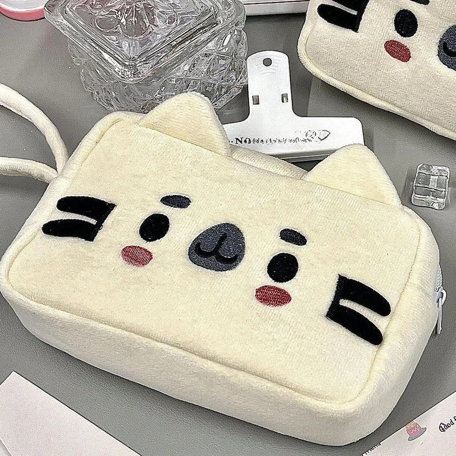 ↑Plush Pencil Case Cute Cat Makeup Bag Large Capacity Portable Plush Animal Stationery Storage Pouch Zipper Closure Pen Case - TopDealBox