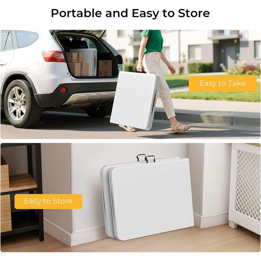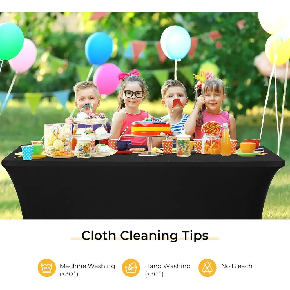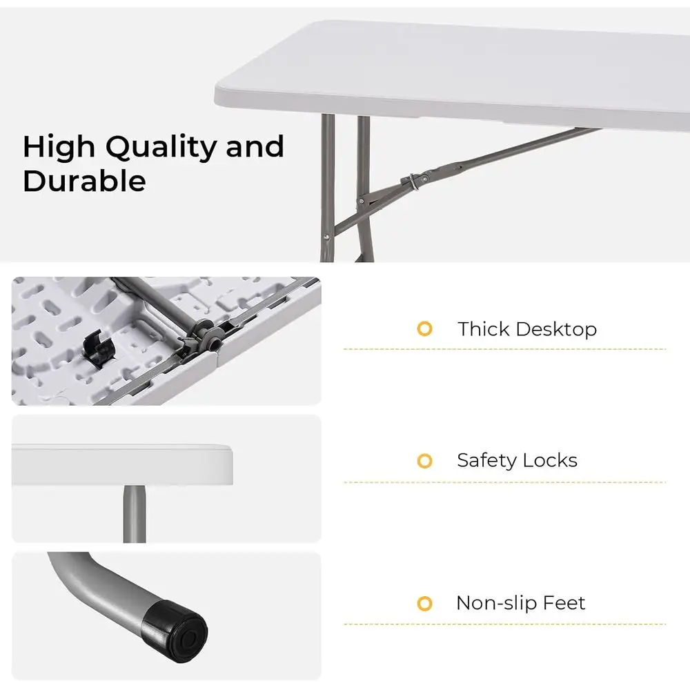 ↑Portable 6ft Folding Table with Black Cloth, HDPE Top, Safety Locks, Compact Storage, Ideal for Outdoor Dining and Events - TopDealBox