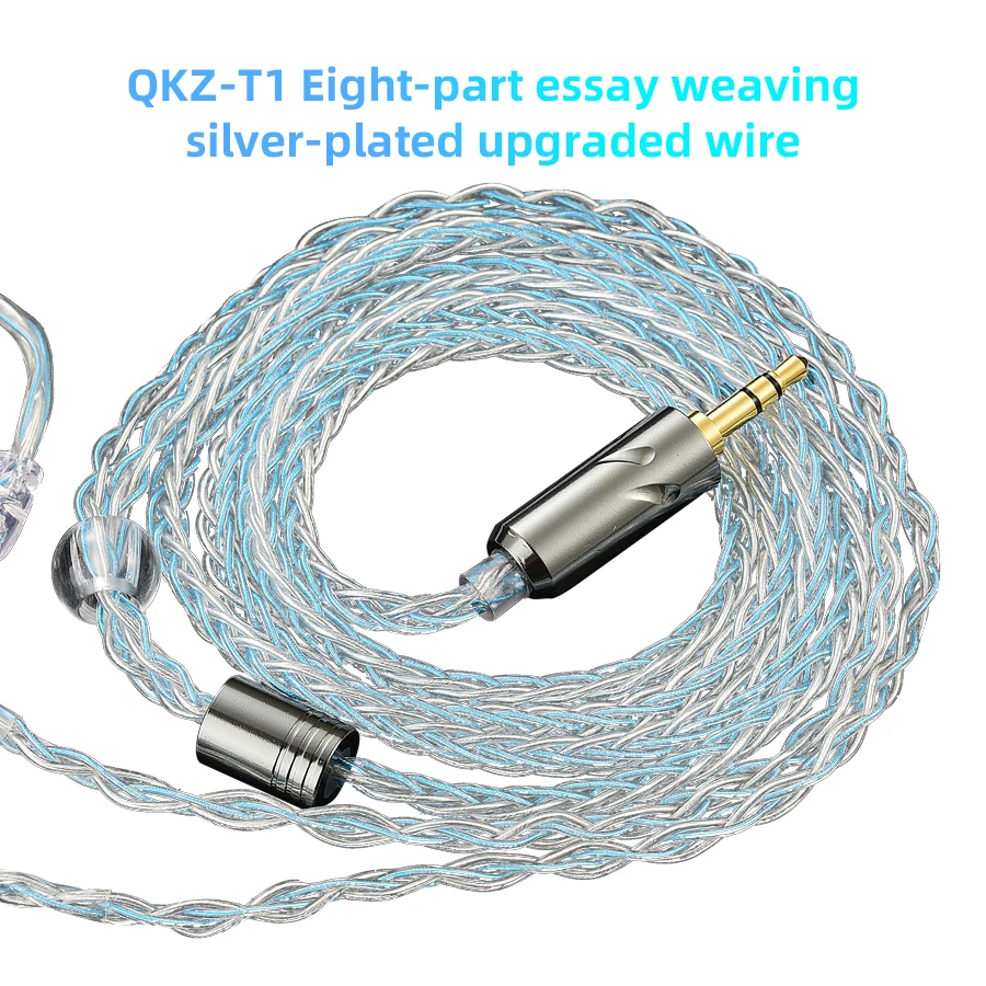 ↑QKZ T1 Earphone Upgrade Cable 8 Core Silver Plated 2Pin 0.75mm 3.5mm HiFi IEM Cable for QKZ ZXN ZXT EDX HBB Wired Headphones - TopDealBox